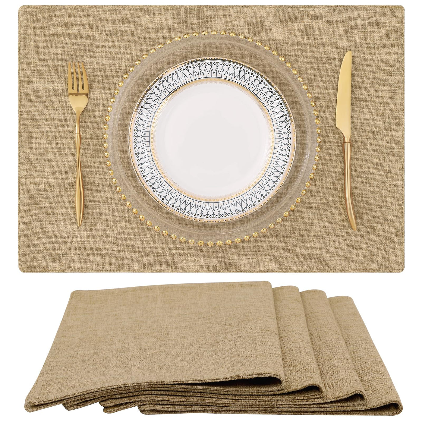 Homing Flaxen Cloth Placemats Set Of 4 - Cotton Linen Blend Washable Farmhouse Dining Table Mats For Indoors & Outdoors, Easy To