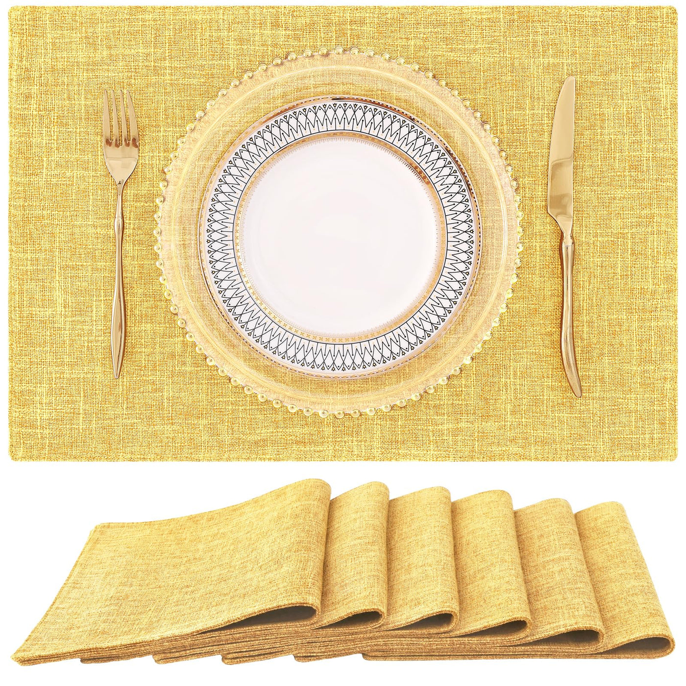 - Q: How many placemats come in a set? A: Each set includes 6 placemats.