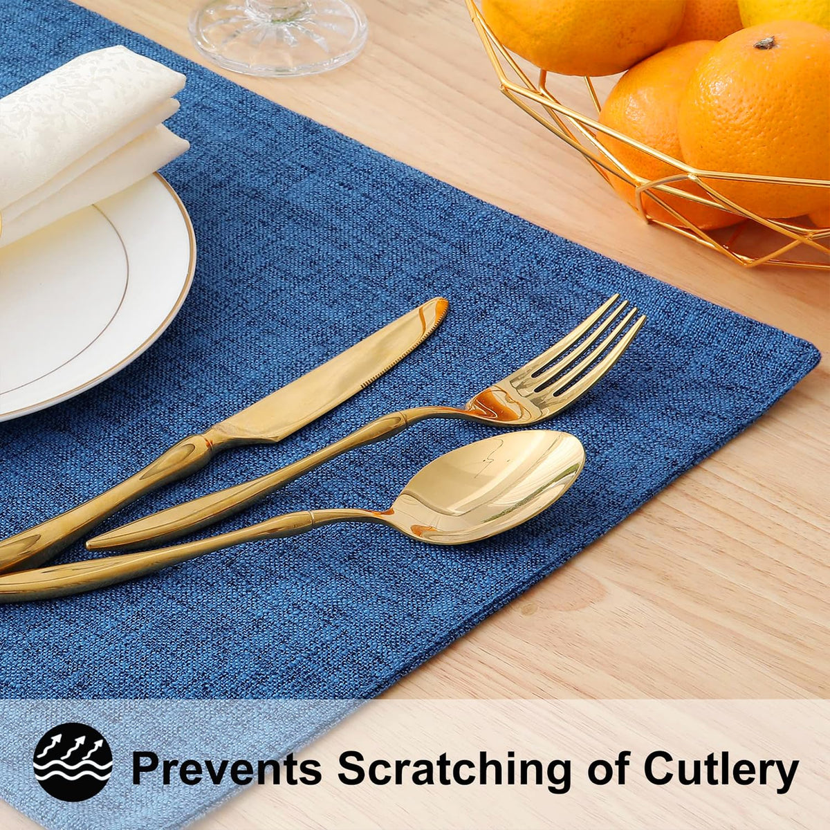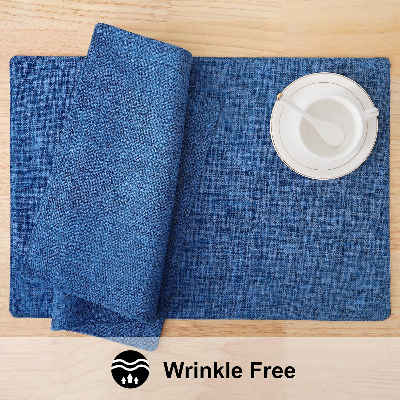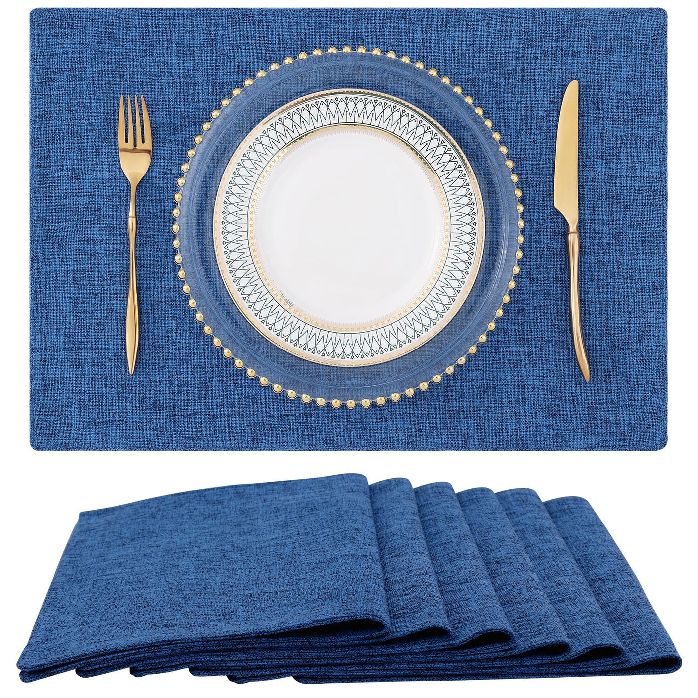 Homing Navy Blue Cotton Linen Blend Placemats For Dining Table Set Of 6 - Washable Farmhouse Kitchen Mats For Indoors & Outdoors