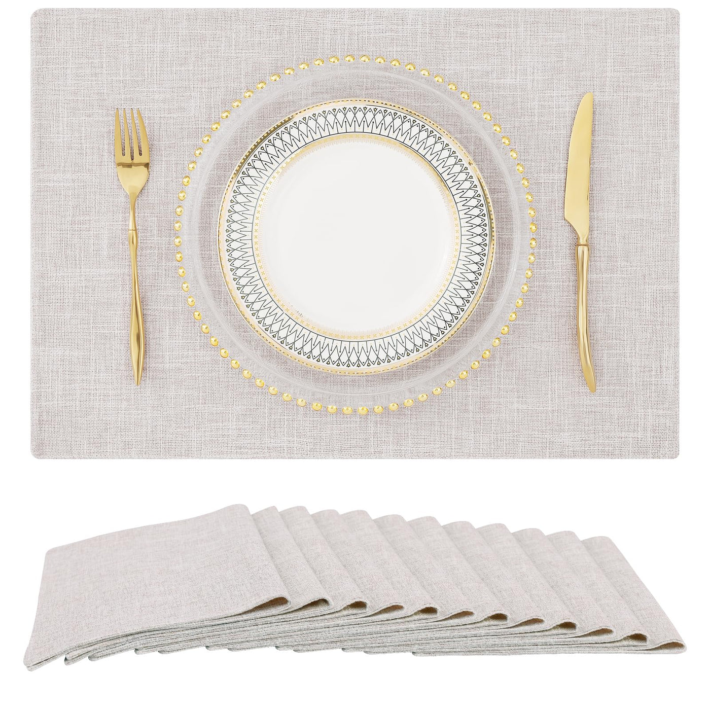 Homing Neutral Beige Cloth Placemats Set Of 12 - Cotton Linen Blend Washable Farmhouse Dining Table Mats For Indoors & Outdoors,
