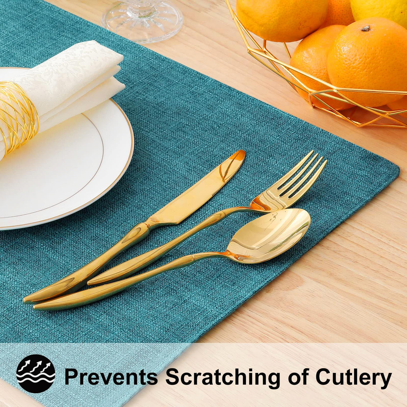 • Q: What material are the placemats made of? A: The placemats are made from a premium cotton and linen blend, providing a classy and elegant look.