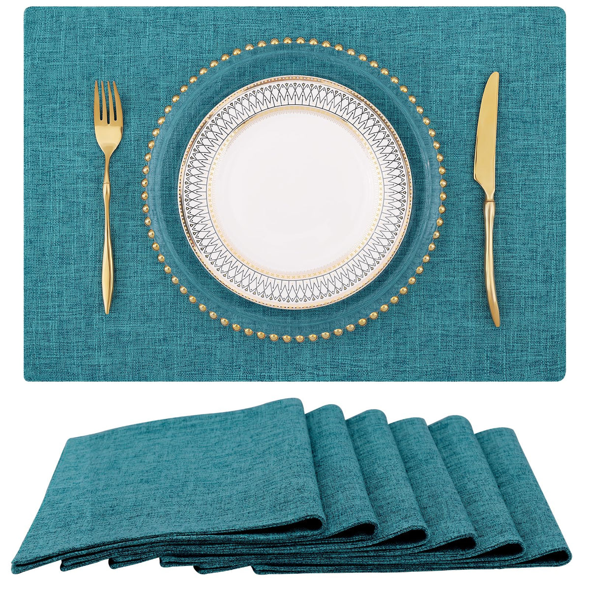 Homing Teal Cloth Easter Placemats Set Of 6 - Cotton Linen Blend Washable Spring Dining Table Mats For Easter, Indoors & Outdoor