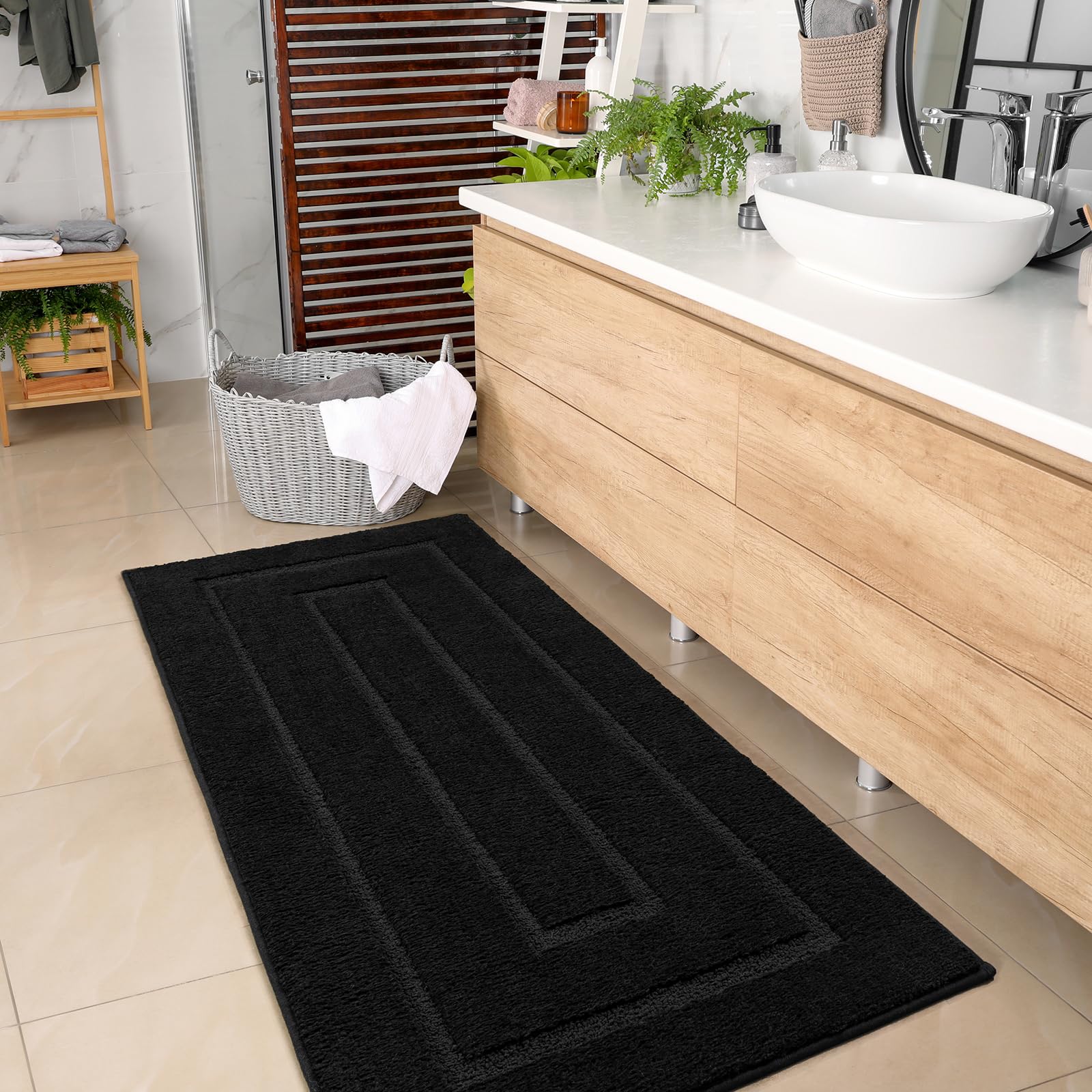 Homore Bath Rug, Black Bathroom Rug 24X60 Thick Soft Absorbent Microfiber Bathroom Runner Rug, Washable Bath Runner Rugs For Bat