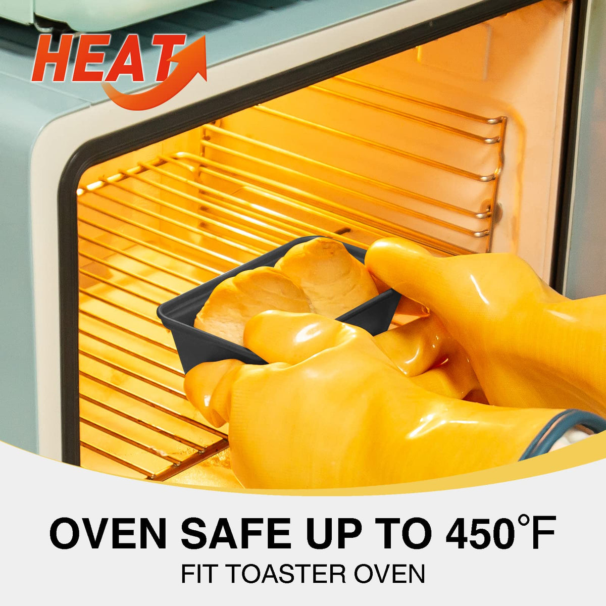 • Q: What is the heat resistance of the HONGBAKE Mini Loaf Pan? A: The HONGBAKE Mini Loaf Pan is heat resistant up to 450 degrees Fahrenheit.
