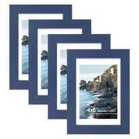 Hongkee 4x6 Picture Frame (4 Pack, Blue), Made of Real Glass and Wooden Frame - Display Pictures 3.5x5 with Mat or 4x6 Without M