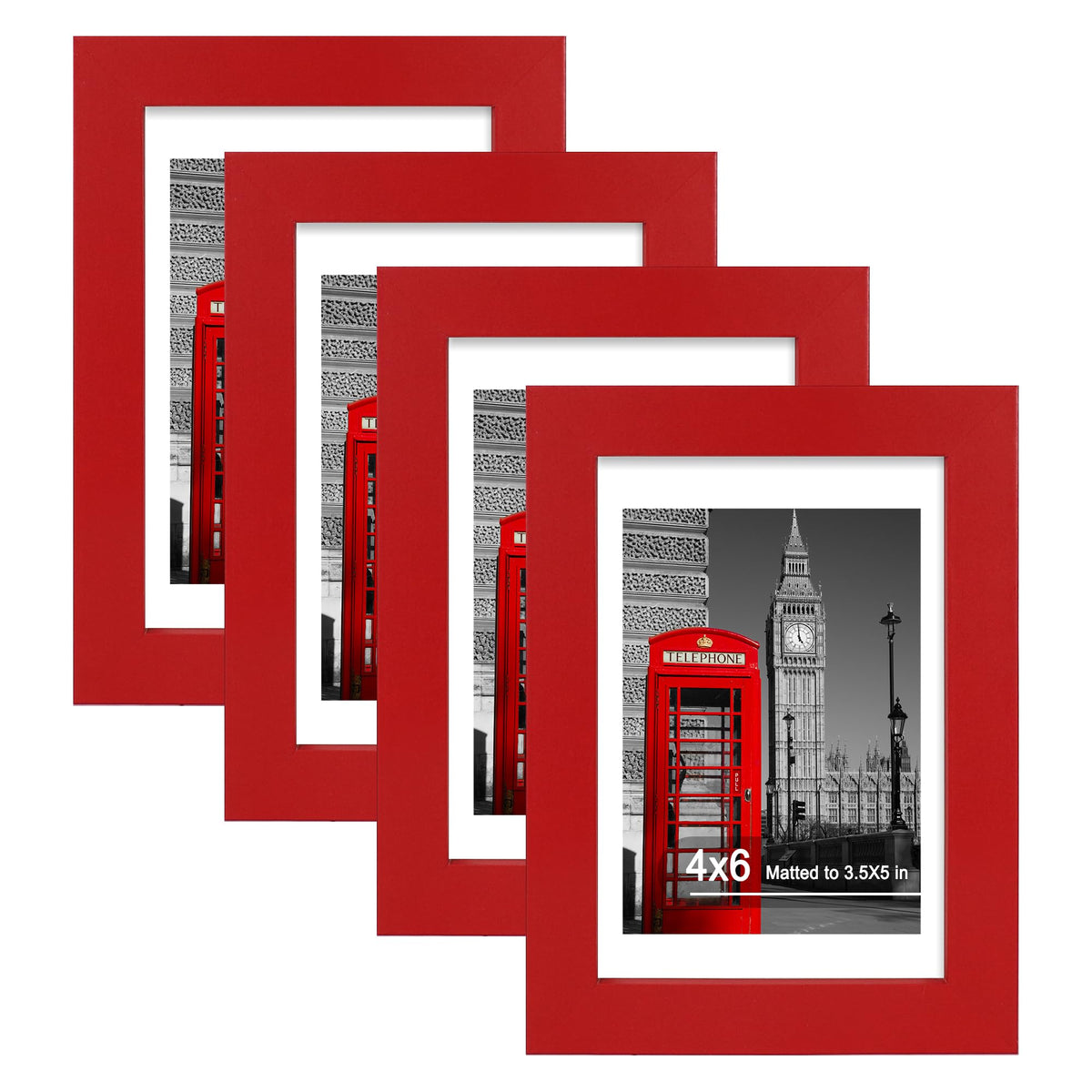 Hongkee 4x6 Picture Frame (4 Pack, Red), Made of Real Glass and Wooden Frame - Display Pictures 3.5x5 with Mat or 4x6 Without Ma