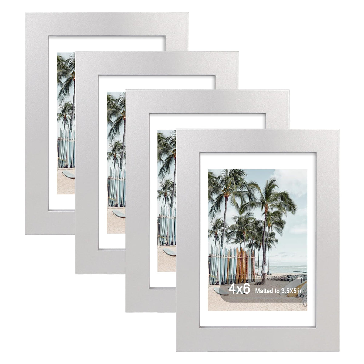 Hongkee 4x6 Picture Frame (4 Pack, Silver), Made of Real Glass and Wooden Frame - Display Pictures 3.5x5 with Mat or 4x6 Without