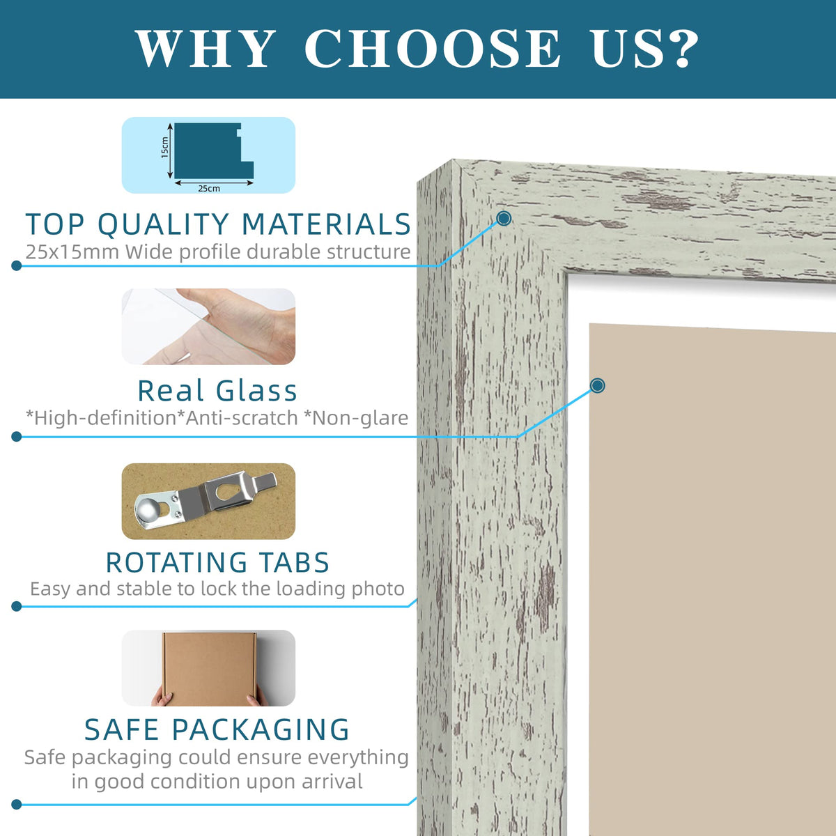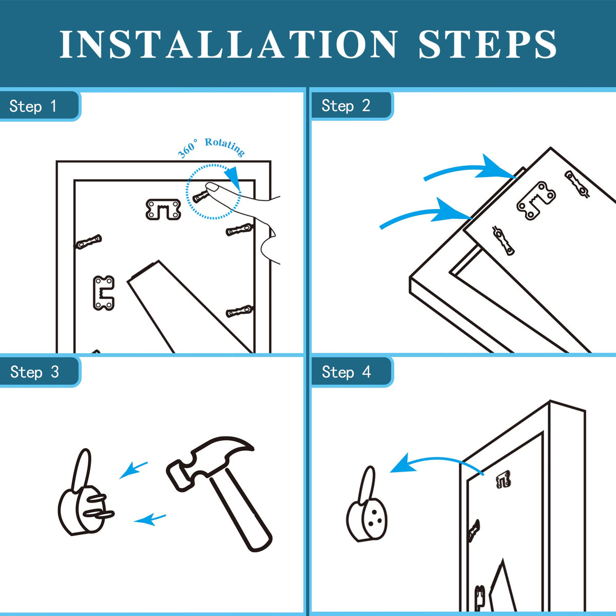 Display Size: 3.5x5inch with mat or 4x6inch without matFrame size: 7.1x5.1x0.62inchQuantity: 4 piecesPicture Frame Material: Composite Wood Frame,MDF backboard,HD glassFrame Display: Desktop on easel-back, hang on the wall with the mounted hanging hangerInstruction: Take the back off place the picture in and put the back on by sliding the eight fasteners??Tips: The industry standard for mat openings should be 0.5 inches smaller than the photo size so that the photo will not easily fall out.Be sure to add us to your list of favorites so you can easily find us the next time you need a quality picture frame. Thank you for shopping with us.