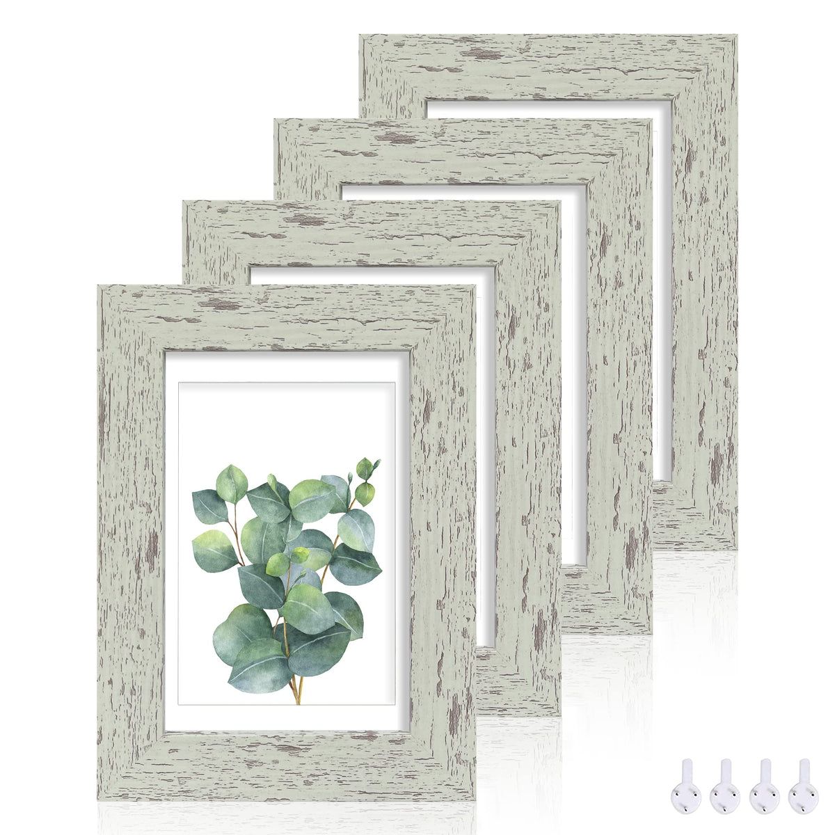 Hongkee 4x6 Picture Frame Set of 4, Made of Real Glass and Sage Green Wooden Frame, 4 by 6 Photo for Wall or Tabletop - Display