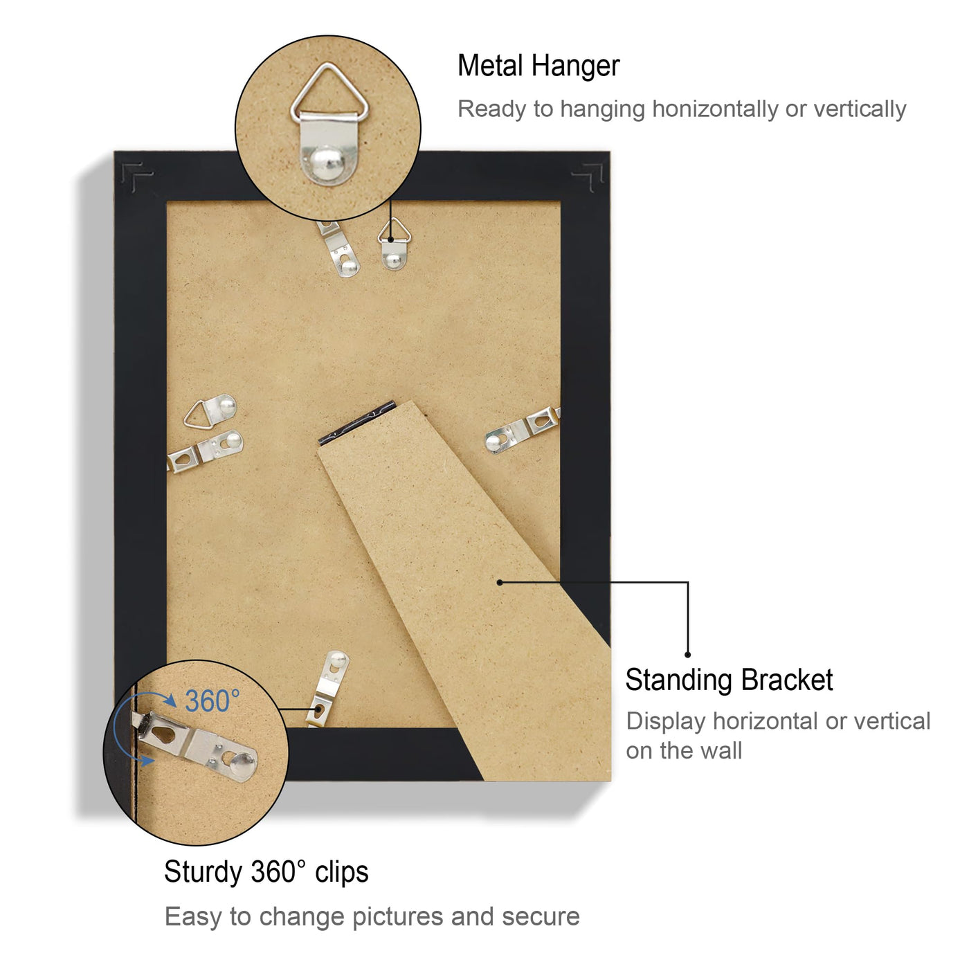 Sturdy Material and Glass: The 6 x 8 frame is made of sturdy wood rather than plastics, great looking and the mounting board is a durable MDF wood. with high-definition real glass cover. Provide you with a clear view. Perfect for displaying family photos, art, prints, or keepsake | One Frame Two Sizes: The 6x8 inch photo frame comes with a mat to display two sizes of photos for every need. This set of frames is suitable for 6x8 inch photos no mat or 4x6 inch photos with mat | Easy to Use! The frames 6x8 come with flexible swivel tabs on the back, Spring type action to remove the backing, without hurting fingers. It