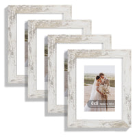 Hongkee 6x8 Picture Frame Set of 4, Made of Real Glass and Distressed White Frame - Display Picture 4x6 with Mat or 6x8 Without