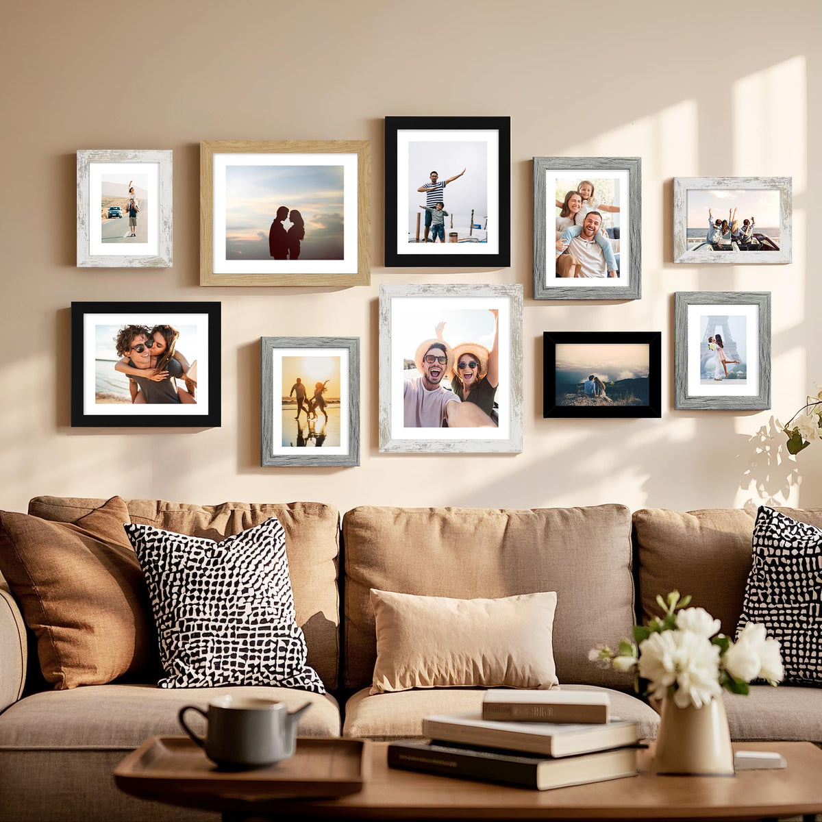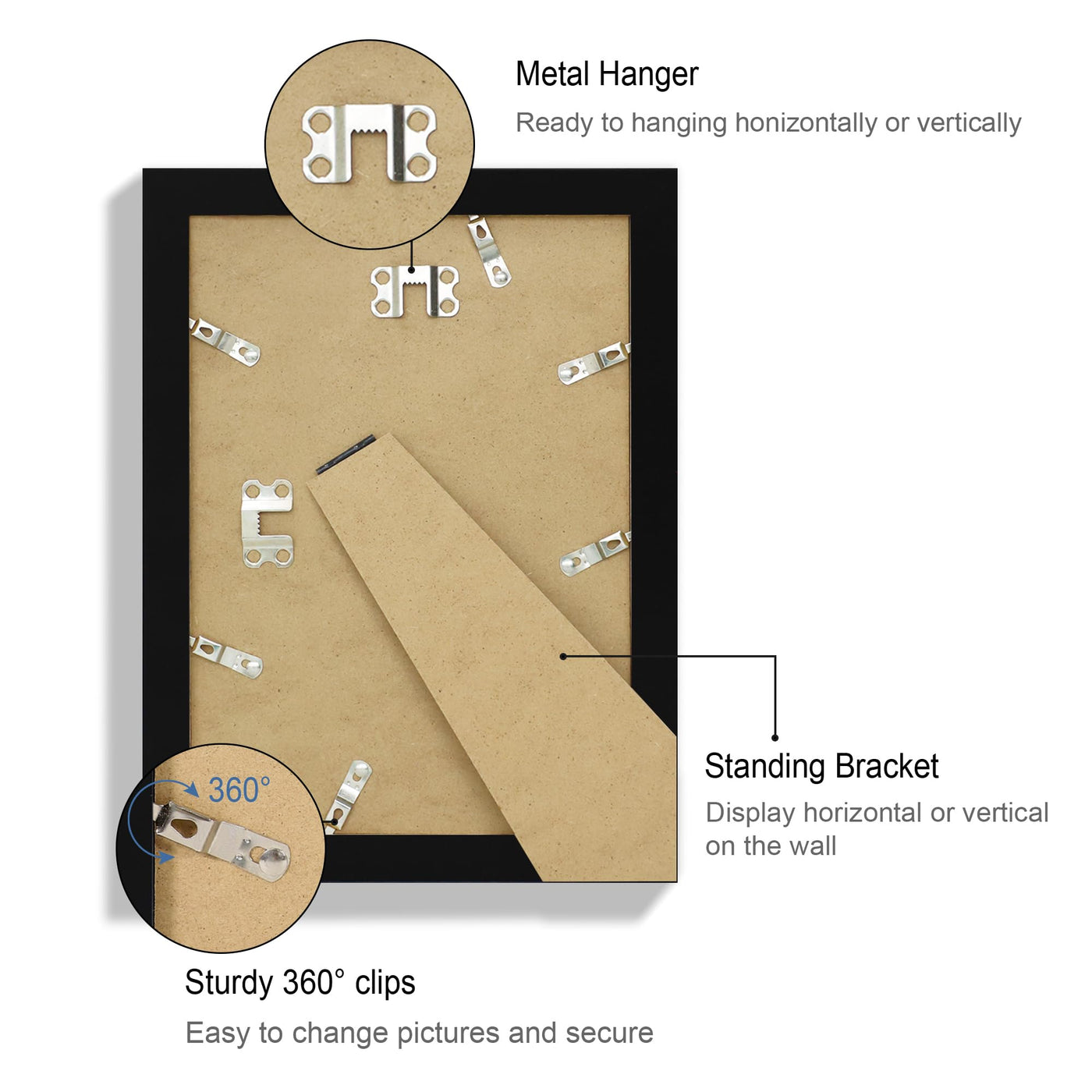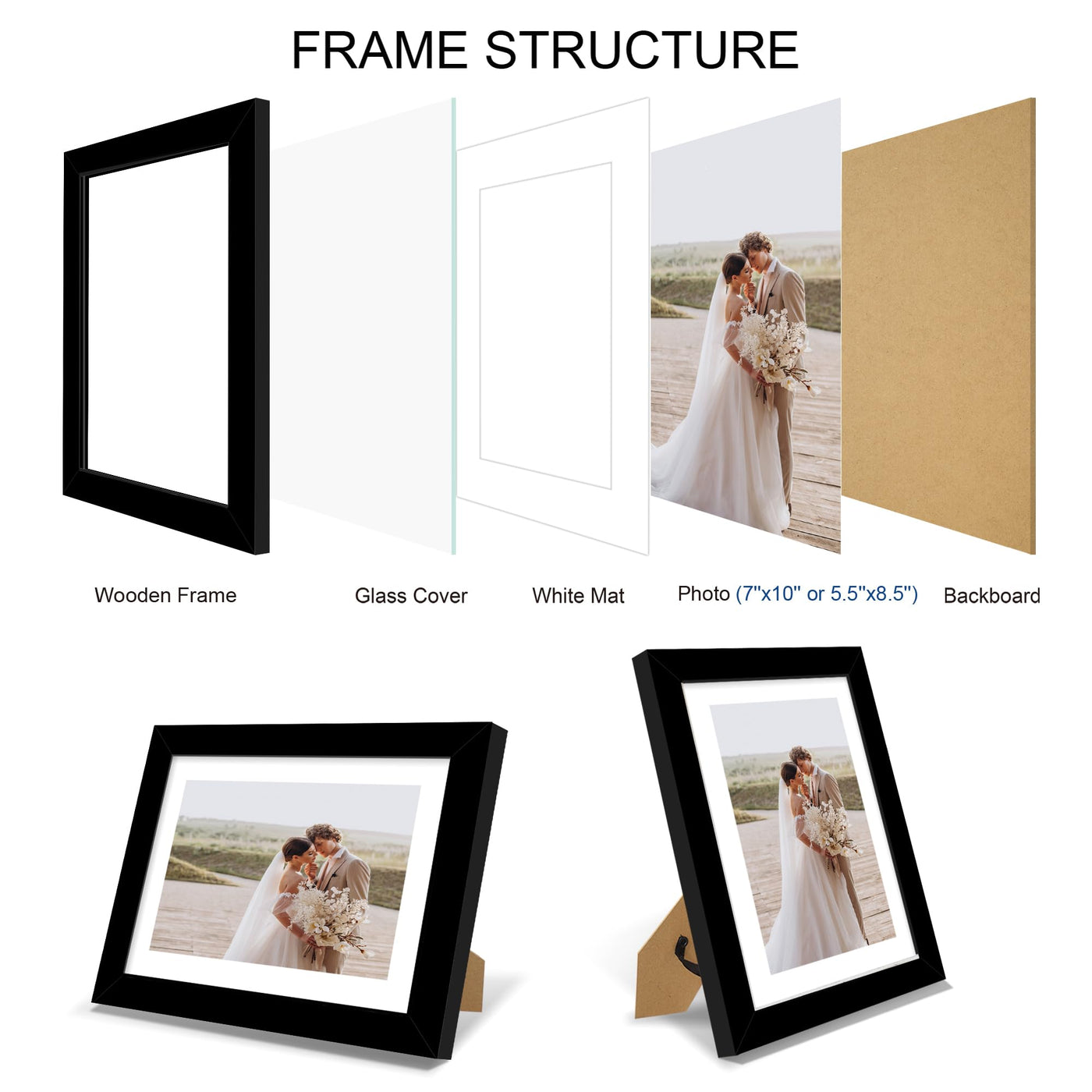 Sturdy Material and Glass: The 7 x 10 frame is made of sturdy wood rather than plastics, great looking and the mounting board is a durable MDF wood. with high-definition real glass cover. Provide you with a clear view. Perfect for displaying family photos, art, prints, or keepsake | One Frame Two Sizes: The 7x10 inch photo frame comes with a mat to display two sizes of photos for every need. This set of frames is suitable for 7x10 inch photos no mat or 5.5x8.5 inch photos with mat | Easy to Use! The frames 7x10 come with flexible swivel tabs on the back, Spring type action to remove the backing, without hurting fingers. It