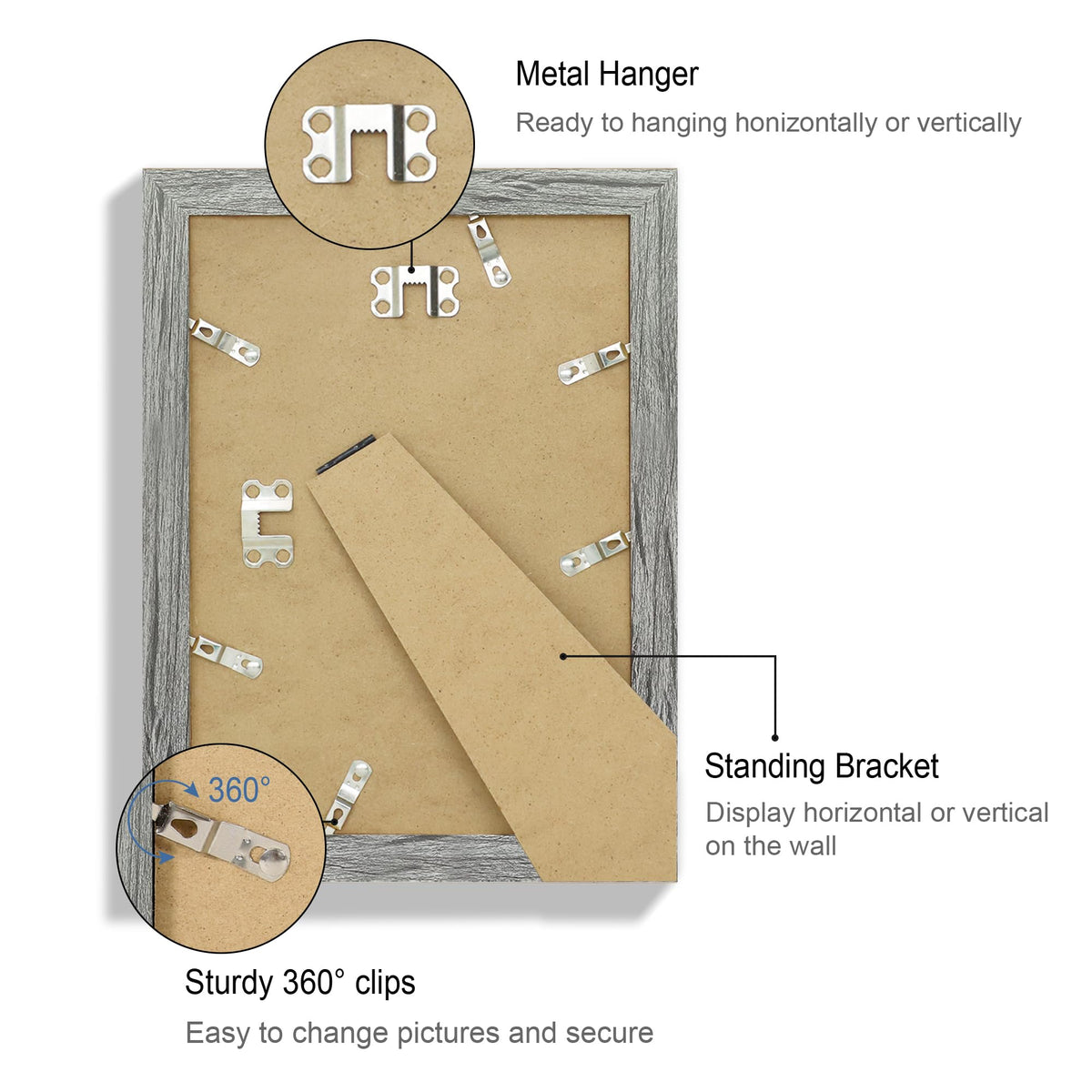 Sturdy Material and Glass: The 7 x 10 frame is made of sturdy wood rather than plastics, great looking and the mounting board is a durable MDF wood. with high-definition real glass cover. Provide you with a clear view. Perfect for displaying family photos, art, prints, or keepsake | One Frame Two Sizes: The 7x10 inch photo frame comes with a mat to display two sizes of photos for every need. This set of frames is suitable for 7x10 inch photos no mat or 5.5x8.5 inch photos with mat | Easy to Use! The frames 7x10 come with flexible swivel tabs on the back, Spring type action to remove the backing, without hurting fingers. It