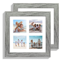 Hongkee 8x8 Picture Frame Set of 2, with Glass and Grey Wood Frames, Display Collage Four Opening 3x3 With Mat or 8 x 8 Without