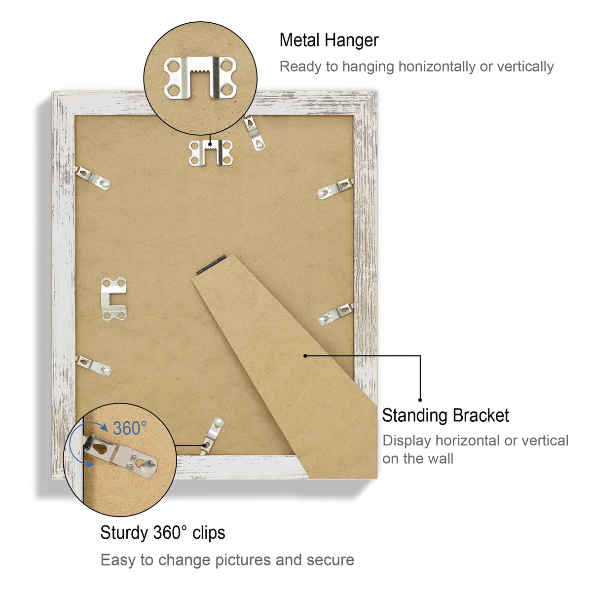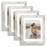 Hongkee 9x11 Picture Frame Set of 4, Made of Real Glass and Distressed White Frame - Display Picture 7x9 with Mat or 9x11 Withou