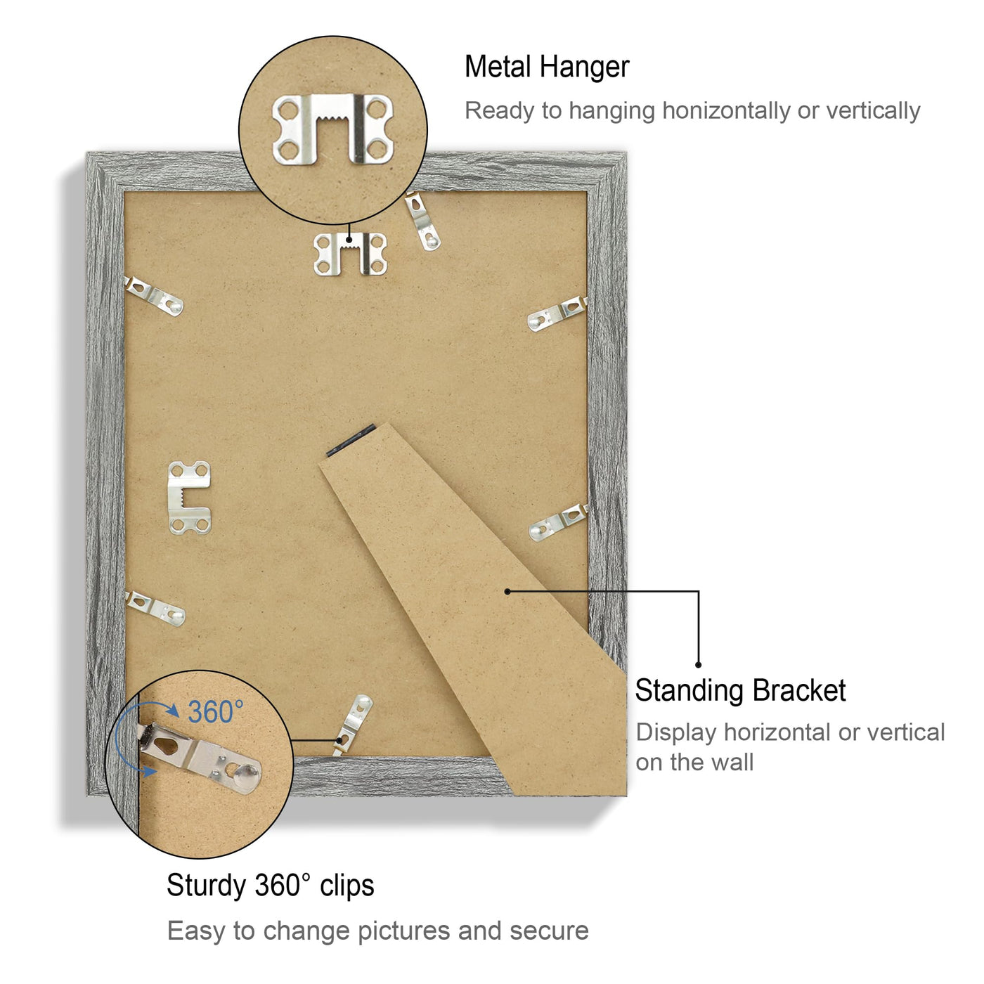 Sturdy Material and Glass: The 9 x 11 frame is made of sturdy wood rather than plastics, great looking and the mounting board is a durable MDF wood. with high-definition real glass cover. Provide you with a clear view. Perfect for displaying family photos, art, prints, or keepsake | One Frame Two Sizes: The 9x11 inch photo frame comes with a mat to display two sizes of photos for every need. This set of frames is suitable for 9x11 inch photos no mat or 7x9 inch photos with mat | Easy to Use! The frames 9x11 come with flexible swivel tabs on the back, Spring type action to remove the backing, without hurting fingers. It
