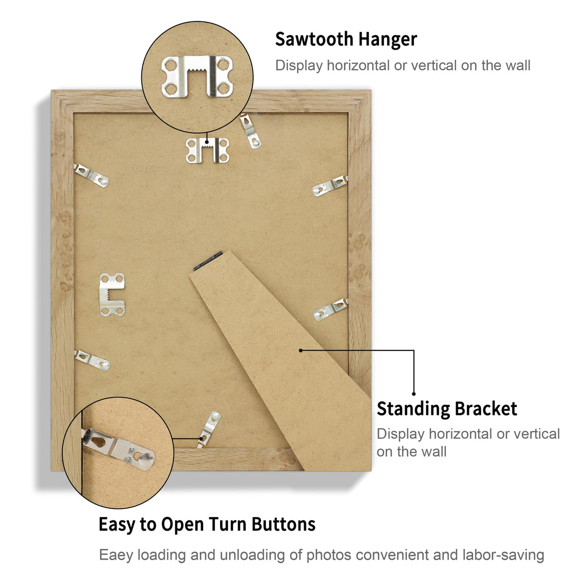 Sturdy Material and Glass: The 9 x 11 frame is made of sturdy wood rather than plastics, great looking and the mounting board is a durable MDF wood. with high-definition real glass cover. Provide you with a clear view. Perfect for displaying family photos, art, prints, or keepsake | One Frame Two Sizes: The 9x11 inch photo frame comes with a mat to display two sizes of photos for every need. This set of frames is suitable for 9x11 inch photos no mat or 7x9 inch photos with mat | Easy to Use! The frames 9x11 come with flexible swivel tabs on the back, Spring type action to remove the backing, without hurting fingers. It