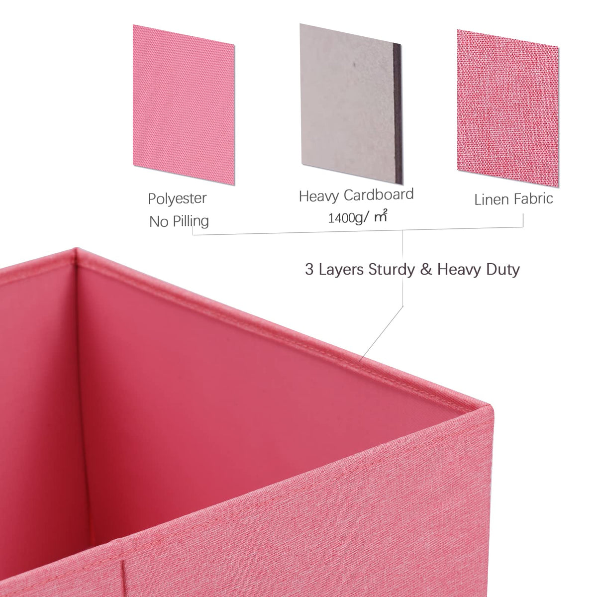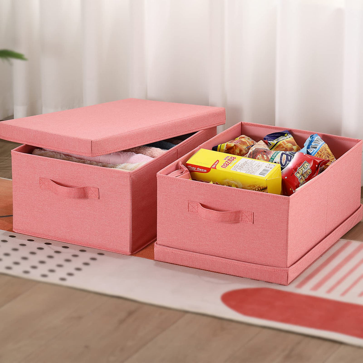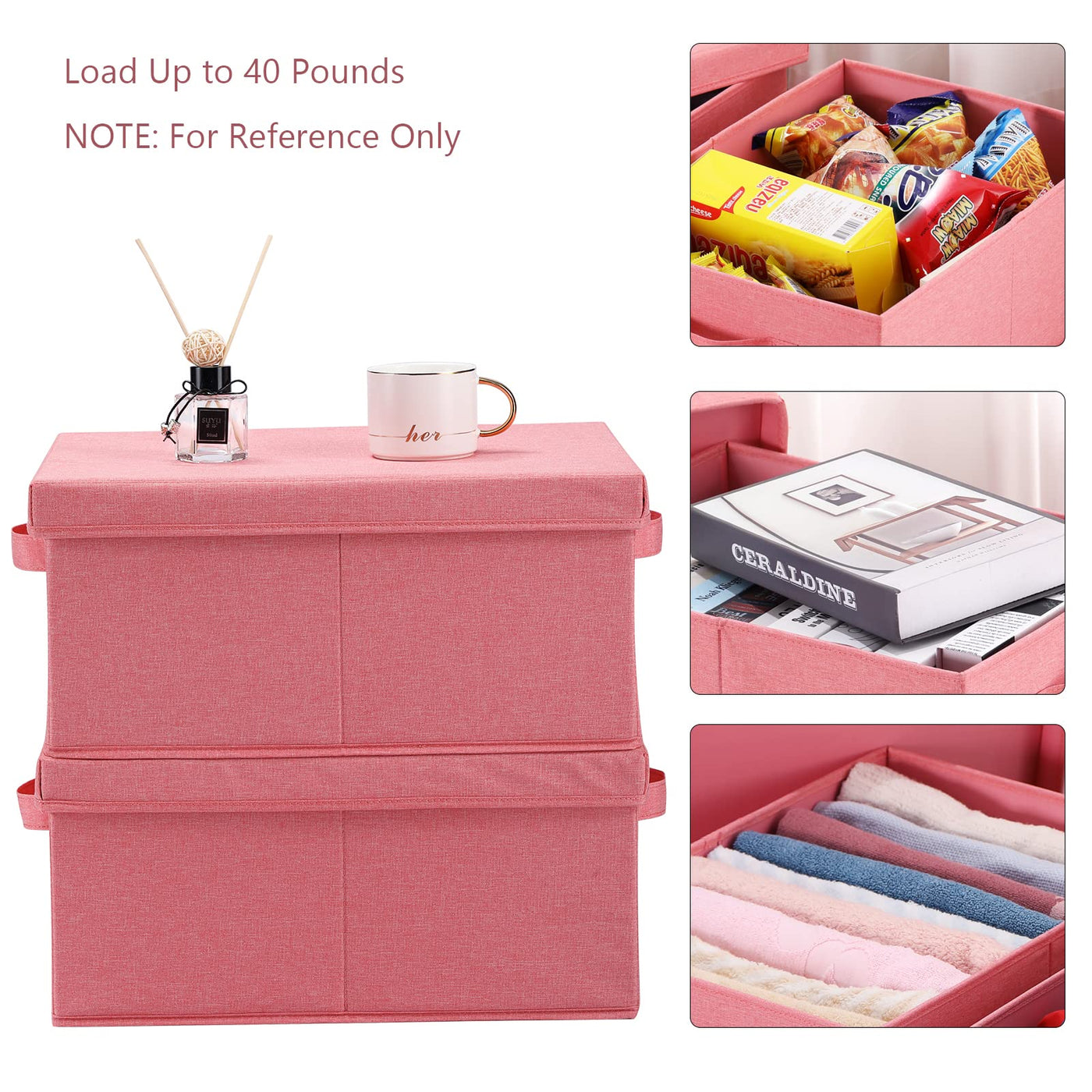 Hoonex Linen Foldable Storage Bins With Lids, 2 Pack, Storage Boxes With Carrying Handles And Sturdy Heavy Cardboard, 16.5'' L X
