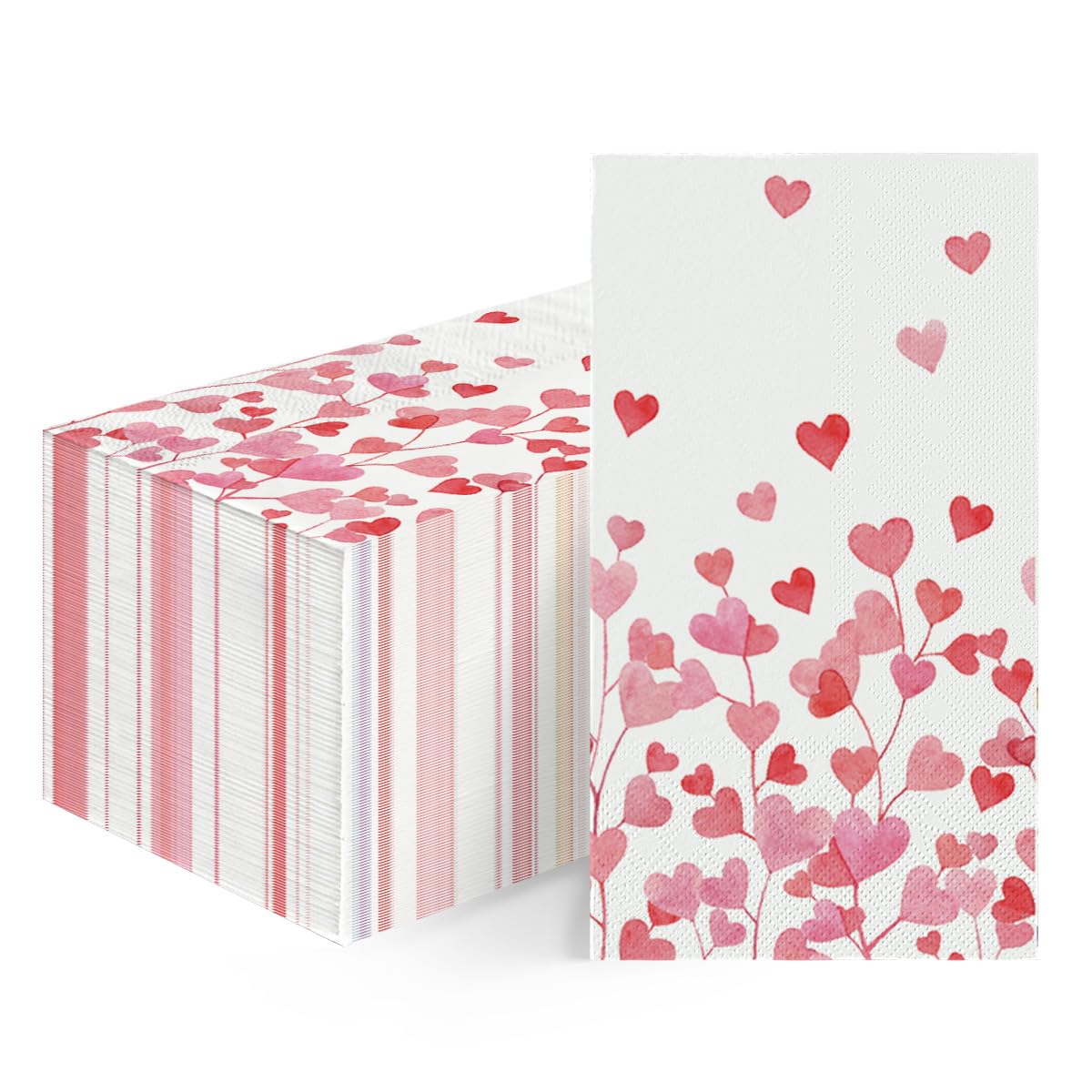 Horaldaily 100 Valentine Disposable Paper Decorative Guest Napkins, Pink Red Love Tree Hand Towel For Party Lunch Dinner Kitchen