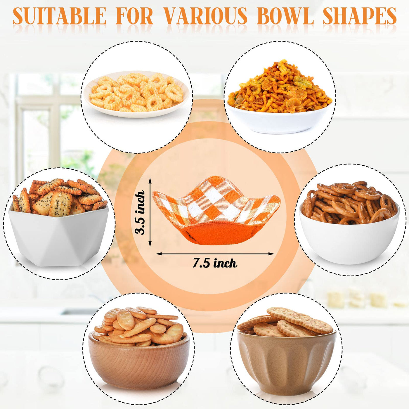 - Q: What sizes do the bowl cozies come in? A: Each bowl cozy measures approximately 7.5 inches in diameter and 3.5 inches in height, making them suitable for various bowl sizes.