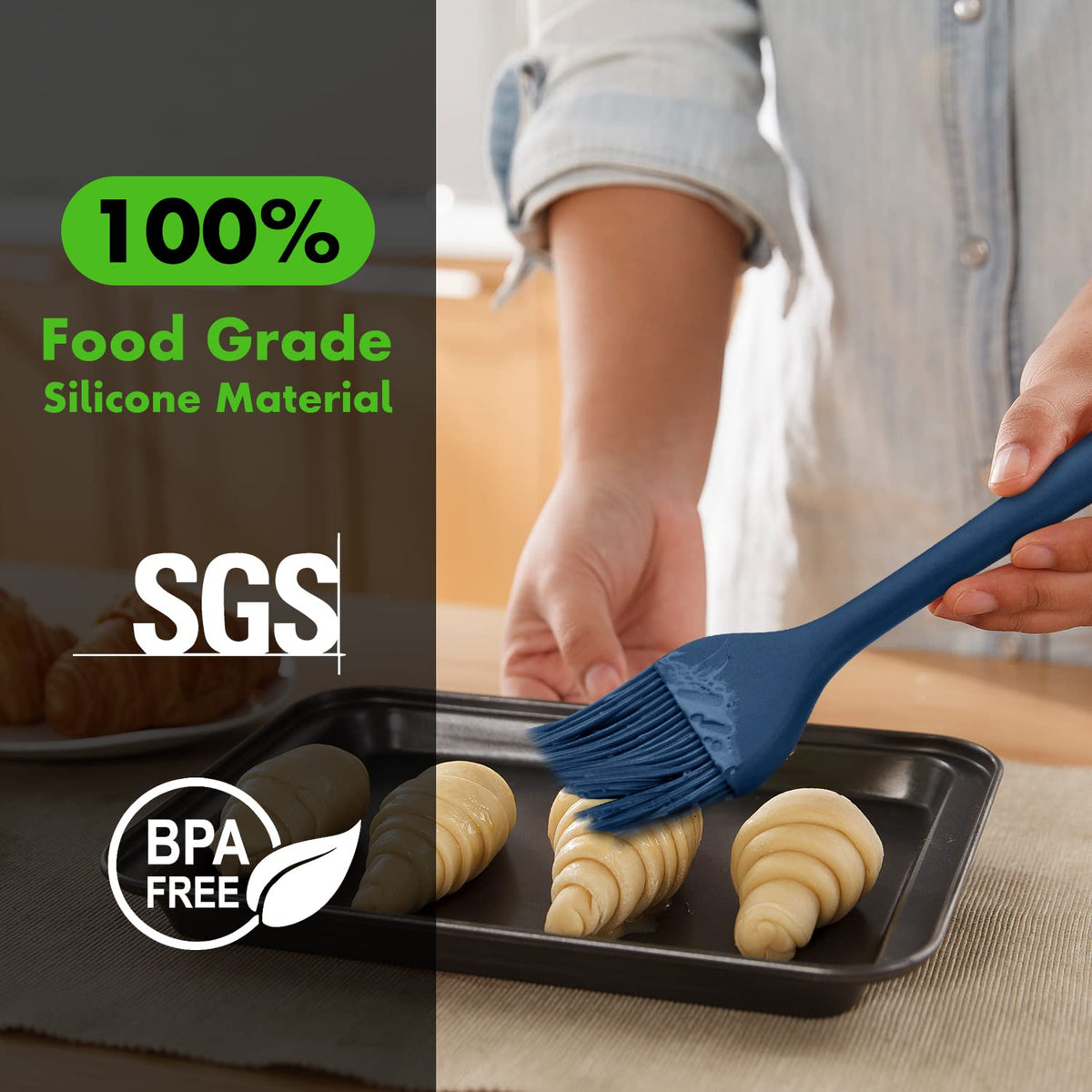 HOTEC 2 pieces Set Basting Brushes Silicone Heat Resistant Pastry Brushes Spread Oil Butter Sauce Marinades for BBQ Grill Barbecue Baking Kitchen Cooking BPA Free Dishwasher Safe (Classic Blue)