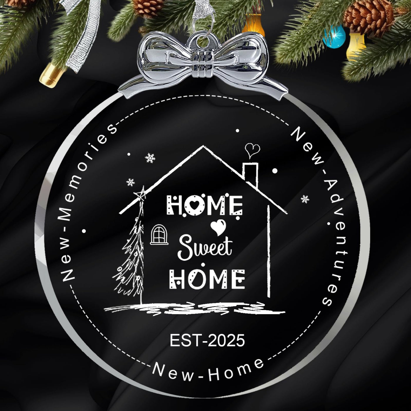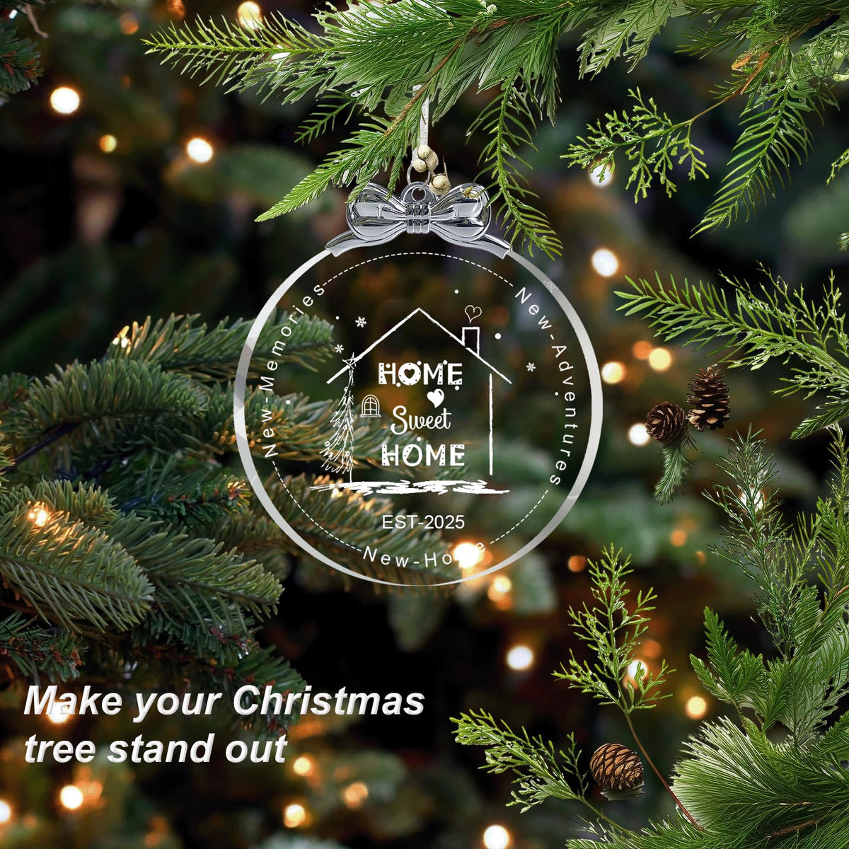 ???Housewarming Gifts 2025?The crystal glass paired with a silver metal bow and a silver ribbon, cute, exquisite and unique design. It can be the highlight of your gift basket or hung on the Christmas tree of the new house owners. Specially designed for gift-giving, it will bring a surprise and smile to the face of receiver and giver. | ???Crystal Material?Made of crystal glass (not acrylic or plastic), transparent high hardness, smooth edges, better gloss and texture. The bowknot part is made of metal, the metal surface is polished and plated, makes the ornament exquisite and cute. The whole metal part sparkles and has a unique metallic texture. Beautiful, unique, durable and collectible. | ???Unique Design?The pattern design of the new home and Christmas tree, accompanied by warm words, specific year: Home, Sweet Home 2025 and the anticipation for the new home: New home, new adventure, new memories. A housewarming gift to celebrate this special moment for the new homeowner and say congratulations. It is a beautiful keepsake. | ???What Will You Get ??1x 3 * 3.5 crystal glass new home ornament 2025; 1x Best wishes greeting black gift box; 1x silver ribbon hanging cord. Specially designed for gift-giving to your lover, families, friends, neighbors etc.. | ???Hanging Xmas Ornaments 2025?The Ornament is including a silver ribbon hanging cord to easily hang on your Christmas tree. Vivid color and unique design, perfect for hanging on the tree, window, wall or anywhere you want.