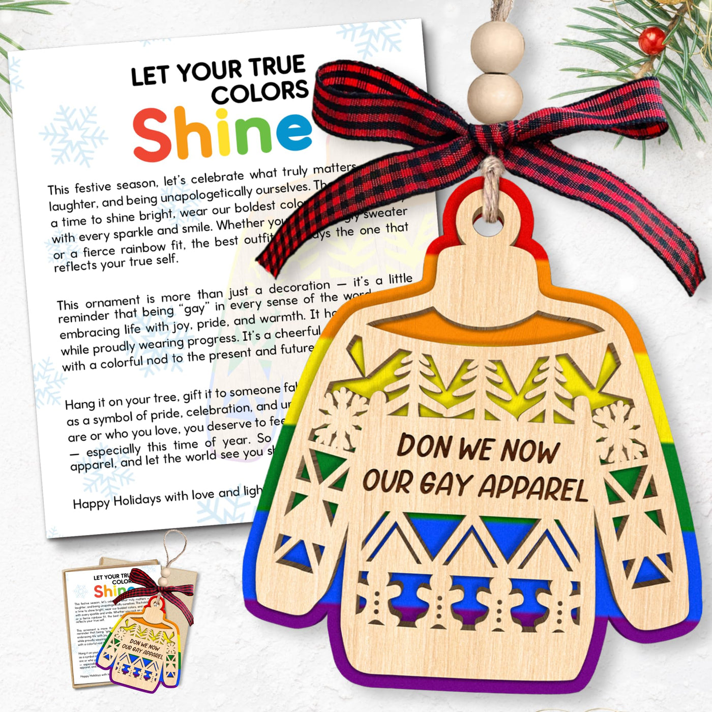 GAY ORNAMENTS FOR CHRISTMAS TREE: This vibrant ornament will be a delightful and cherished keepsake that celebrates love, pride, and joy during the holiday season. Its colorful design will brighten your tree, creating a festive atmosphere filled with warmth, happiness, and inclusivity. Gay Ornaments: gay ornament, pride christmas ornaments, pride ornaments, lgbtq christmas ornaments, gay ornaments, lgbtq ornaments, gay pride christmas ornaments, gay pride ornament, gay ornaments for christmas, gay couple christmas ornament Gay Gifts: gifts for gay men, lgbtq gifts, pride gifts, gay men gifts, gay gifts for guys, gay pride gifts, lgbt gifts, gay couple gifts for men, gifts for gay men who have everything, funny gay gifts, his and his gay couple gifts, lgbtq wedding gifts, mr and mr gifts for gay couples, lgbtq gifts for men, gifts for lgbtq, gay wedding gifts for men, gay wedding gifts, wedding gifts for gay couples, lgbtq anniversary gifts, engagement gifts for gay couples PRODUCT INFORMATION Thickness: 0.12 inch/ 0.3 cm for each layer Wood Christmas Tree Ornament Ornament Set: 1x Ornament, 1x Twine Rope Ribbon, and 1x Gift Box