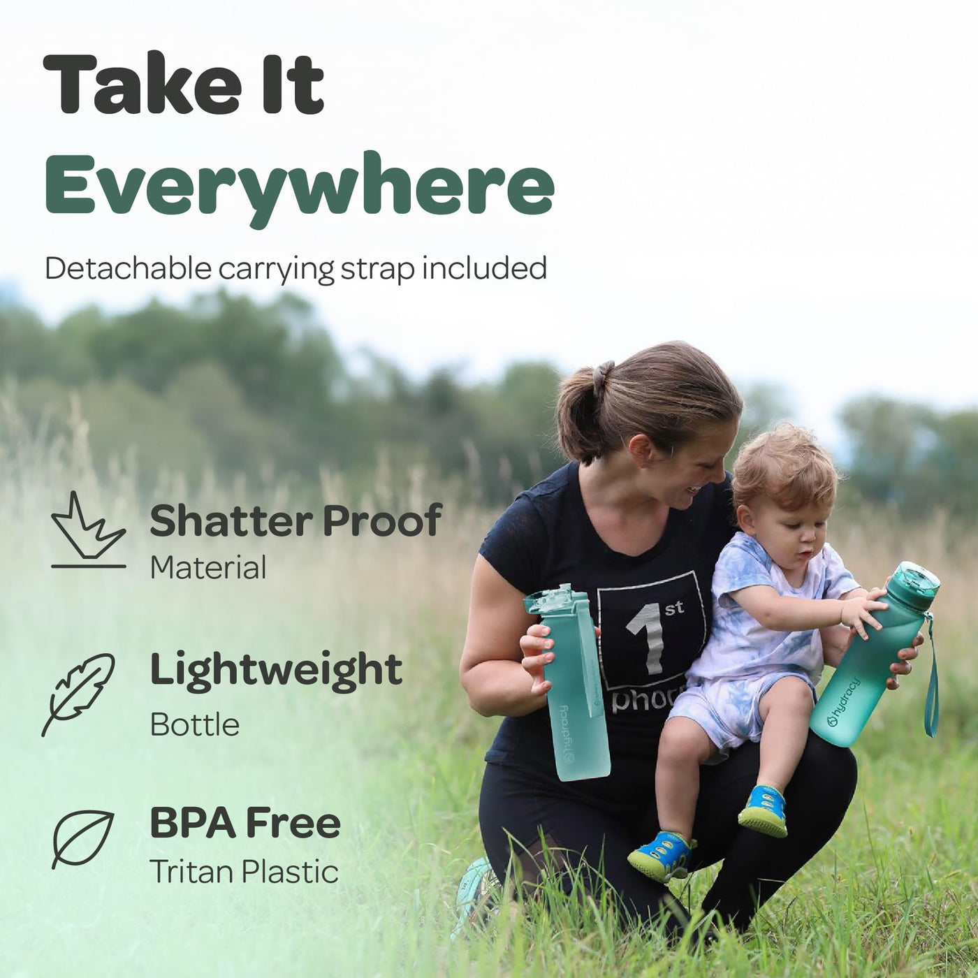 - Q: What features does the Hydracy Water Bottle have? A: The bottle includes a time marker to track hydration, a spill-proof flip top lid, a wide mouth for easy filling, a detachable travel strap, and a fruit infusion strainer.