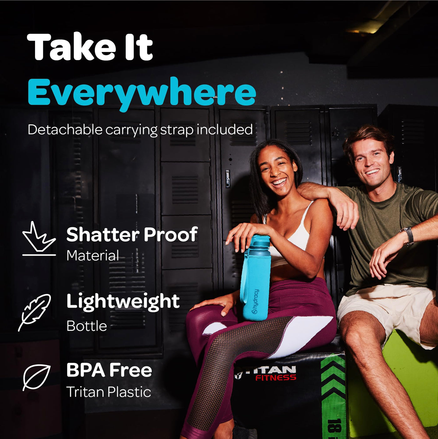 - Q: What materials are used in the Hydracy Water Bottle's design? A: The Hydracy Water Bottle is designed with durable Tritan plastic and includes a neoprene sleeve to prevent condensation.