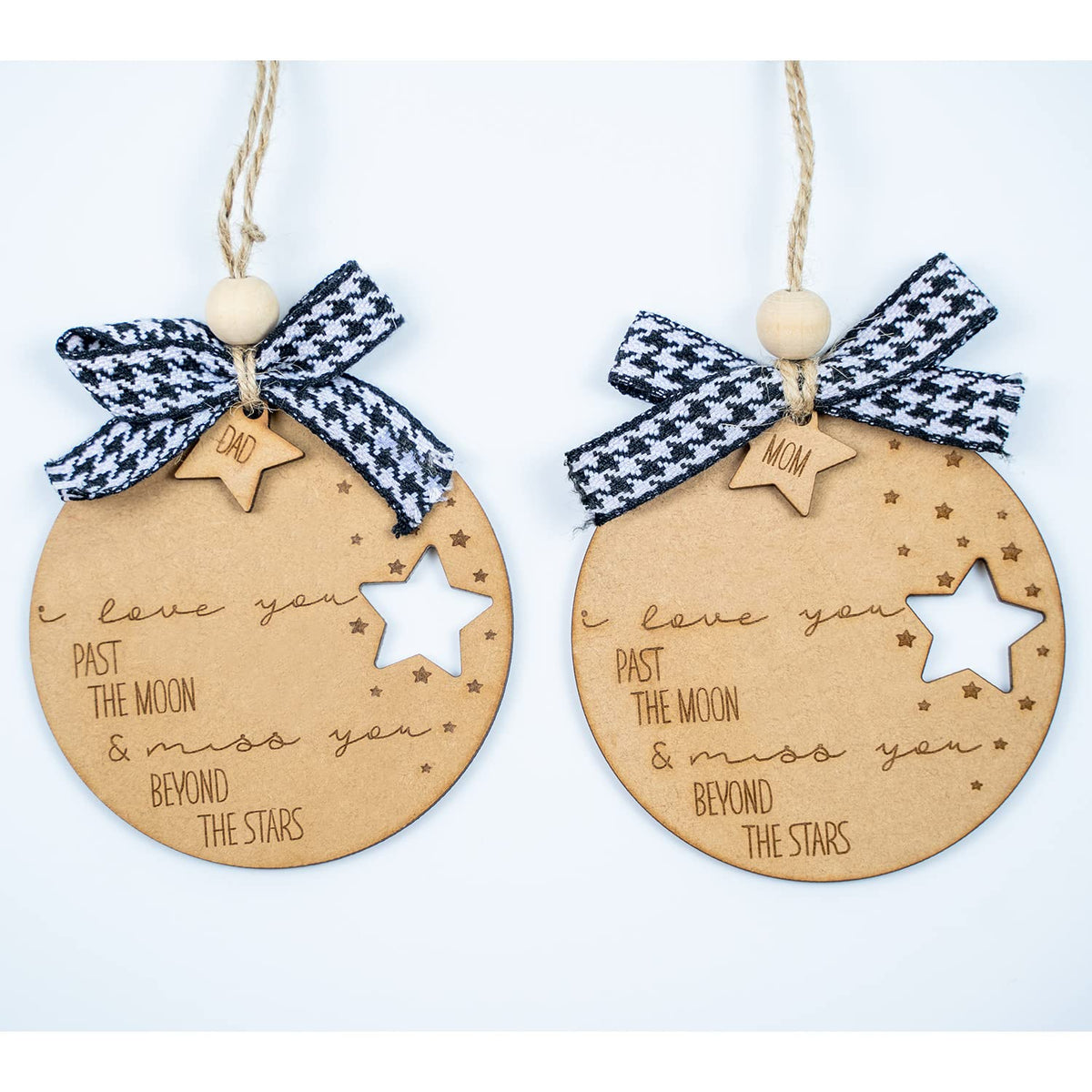 I Love You Past The Moon Wooden Memorial Christmas Ornaments - Dad Memorial Sympathy Gifts for Loss