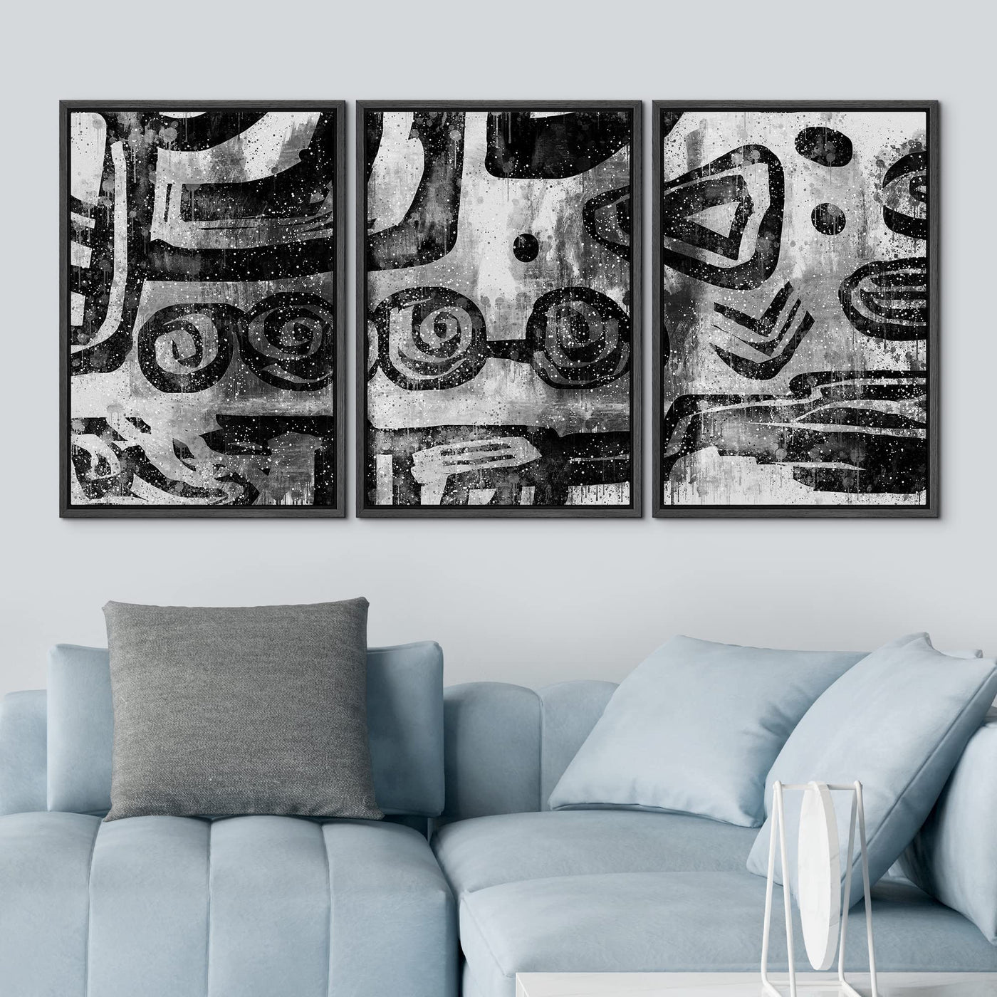 Idea4Wall Framed Wall Art Print Set Black & White Line Art & Polygon Pattern Abstract Shapes Illustrations Modern Art Mid-Centur