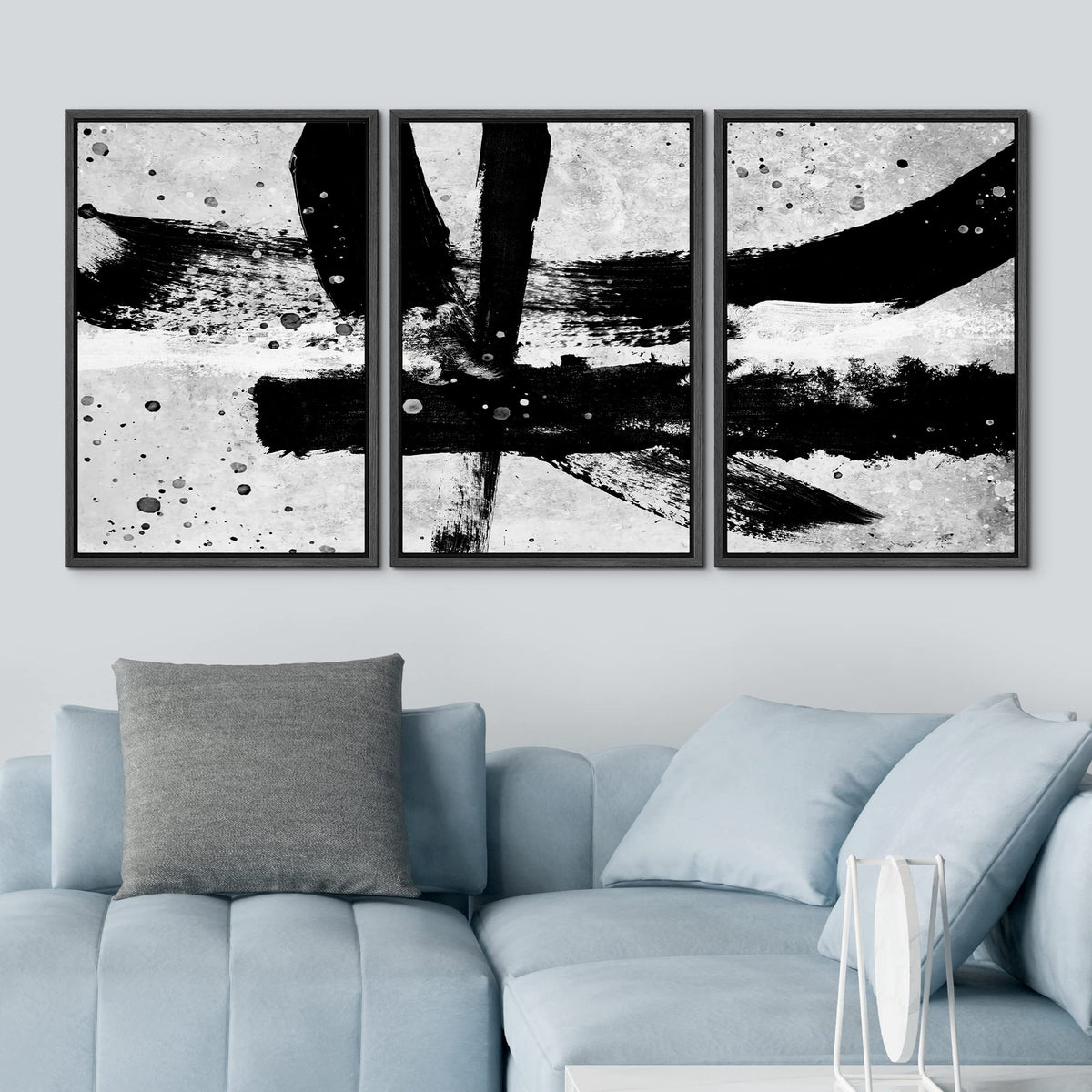 - Q: What are the dimensions of the IDEA4WALL Framed Wall Art Print Set? A: The IDEA4WALL Framed Wall Art Print Set consists of three panels, each measuring 24 inches by 36 inches.