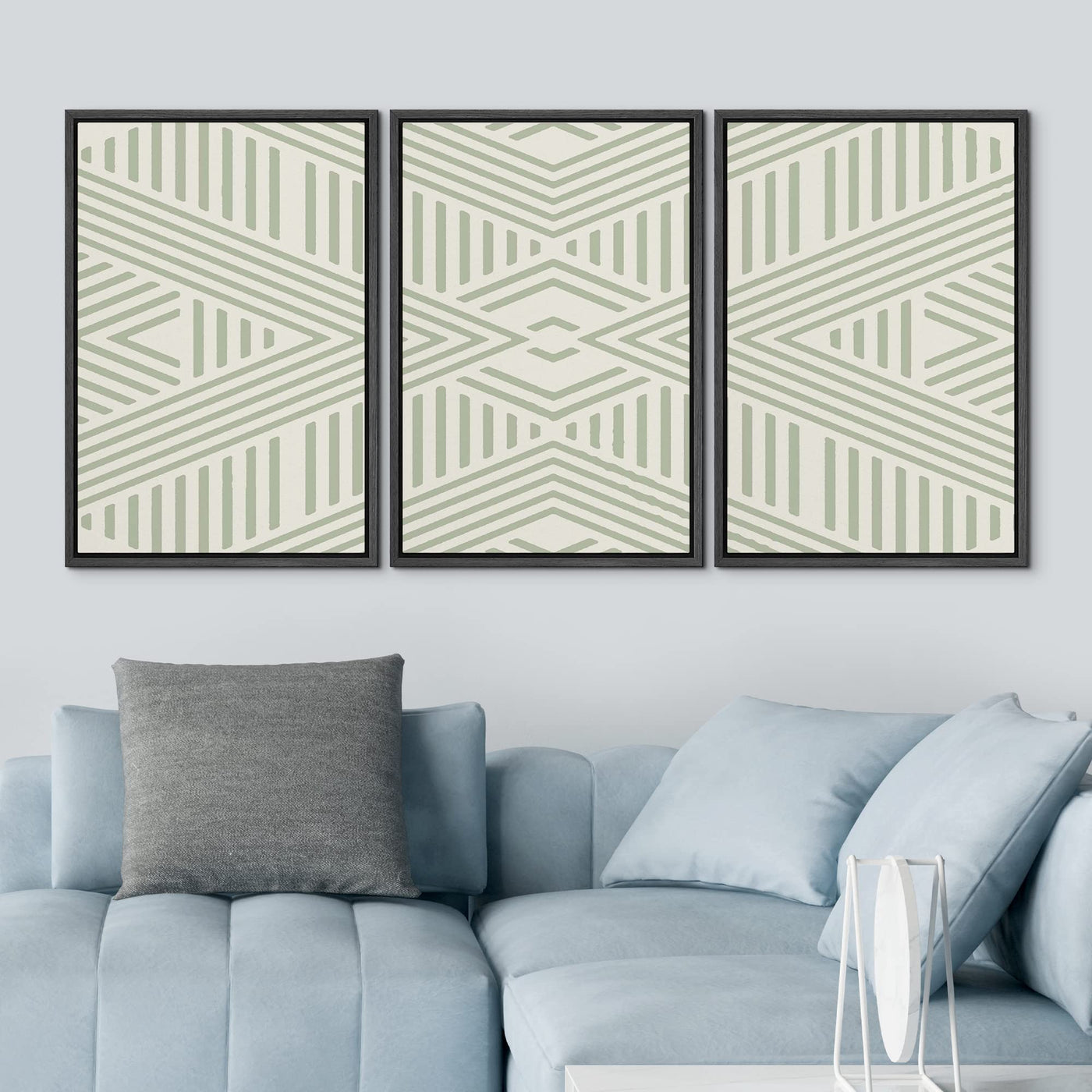 Idea4Wall Framed Wall Art Print Set Dark & Light Green Tribal Triangle Pattern Geometric Shapes Illustrations Modern Art Bohemia