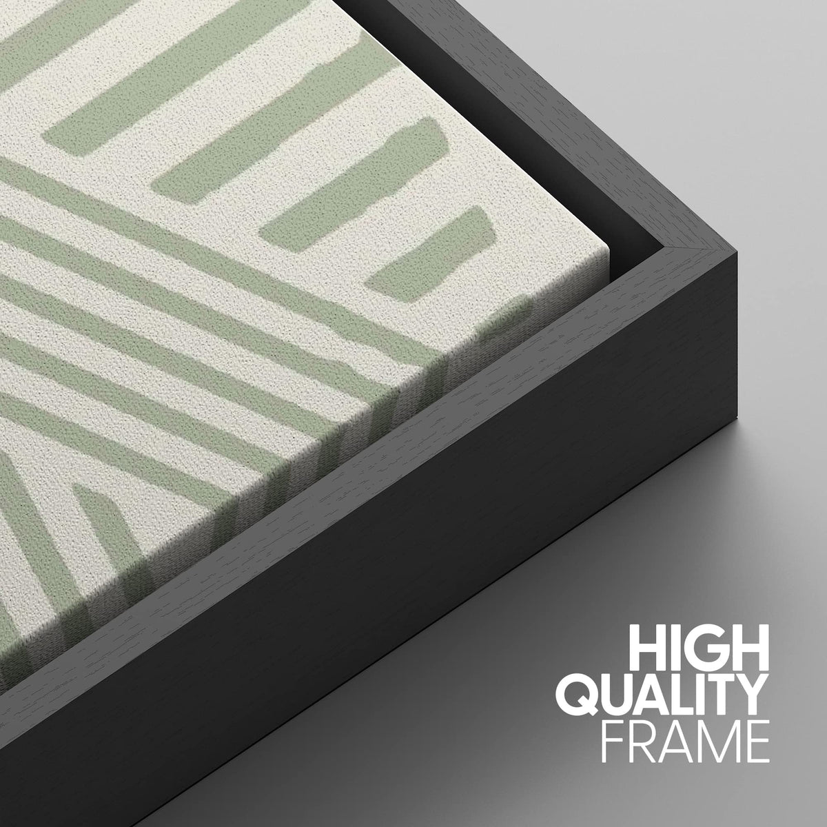 - Q: What type of images are featured in this art set? A: This set features geometric shapes and tribal triangle patterns in dark and light green, offering a modern bohemian aesthetic.