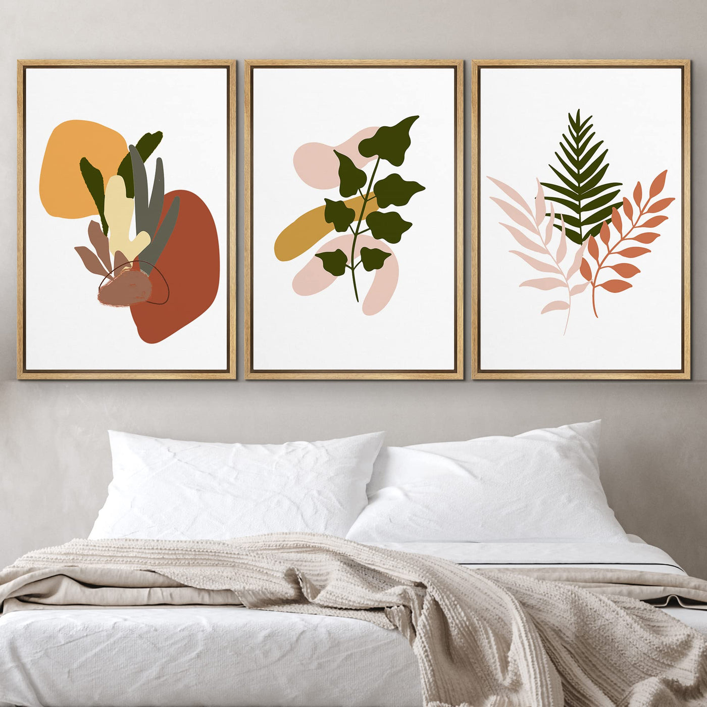 Idea4Wall Framed Wall Art Print Set Pink, Green & Brown Desert Plants & Polygons Geometric Flower Illustrations Modern Art Rusti