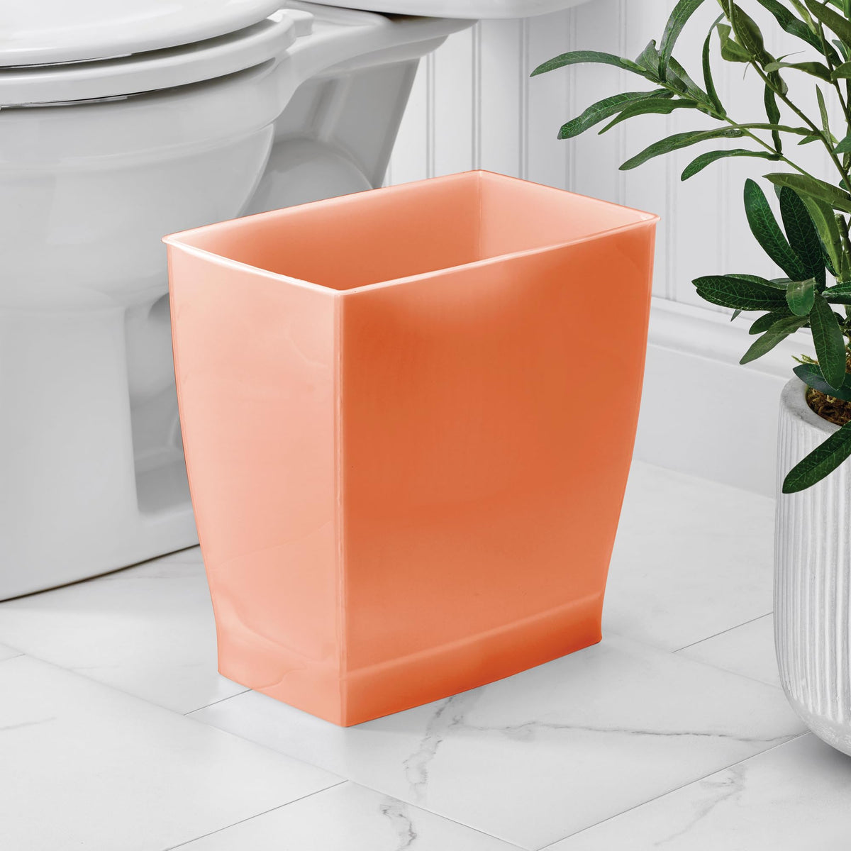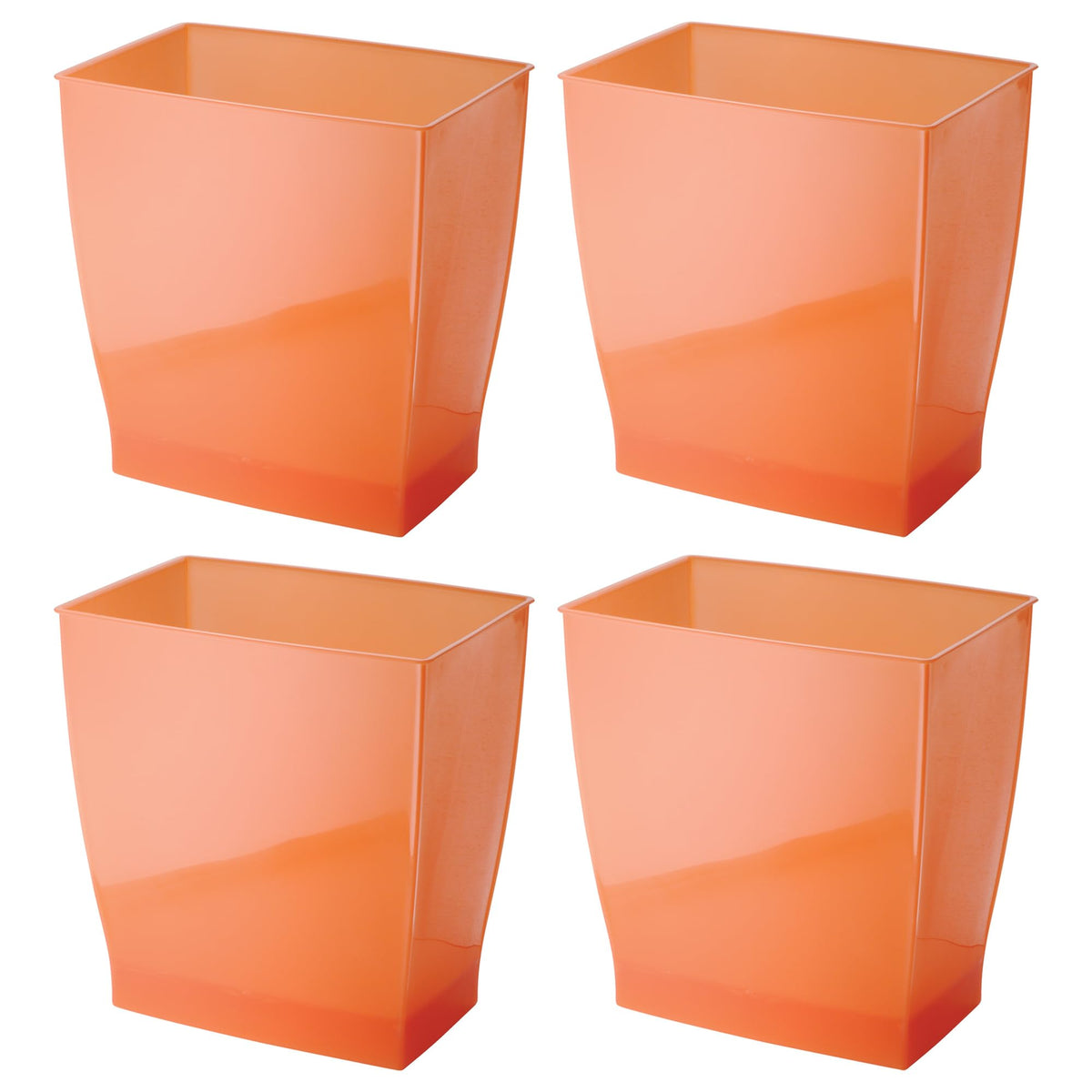 iDesign Small Plastic Bathroom Trash Can, Slim Rectangle Garbage Bin for Bedroom, Office, Dorm, 4-Pack, Orange