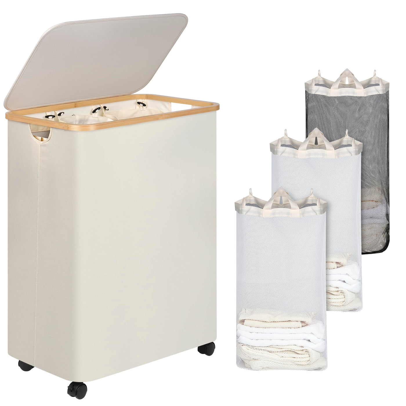 Iegrow Lagre Laundry Basket With Wheels, Laundry Hamper With Lid, 160L Clothes Hamper For Laundry With 3 Liner Bags, For Laundry