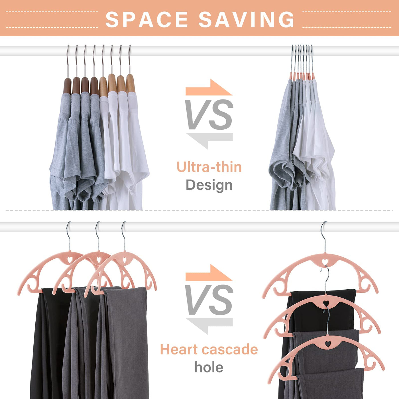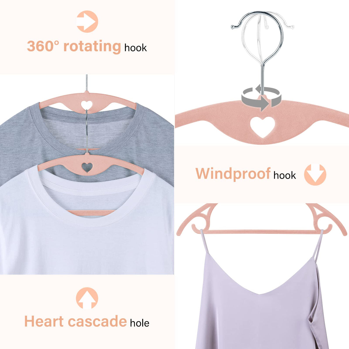 IEOKE Velvet Hangers 50-Pack No Shoulder Bumps Suit Hangers Ultra Thin Space Saving 360 Degree Swivel Heavy Duty Hook Durable Hangers for Sweaters Coat Jackets Shirts Dresses (50 Pack Pink/Silver)