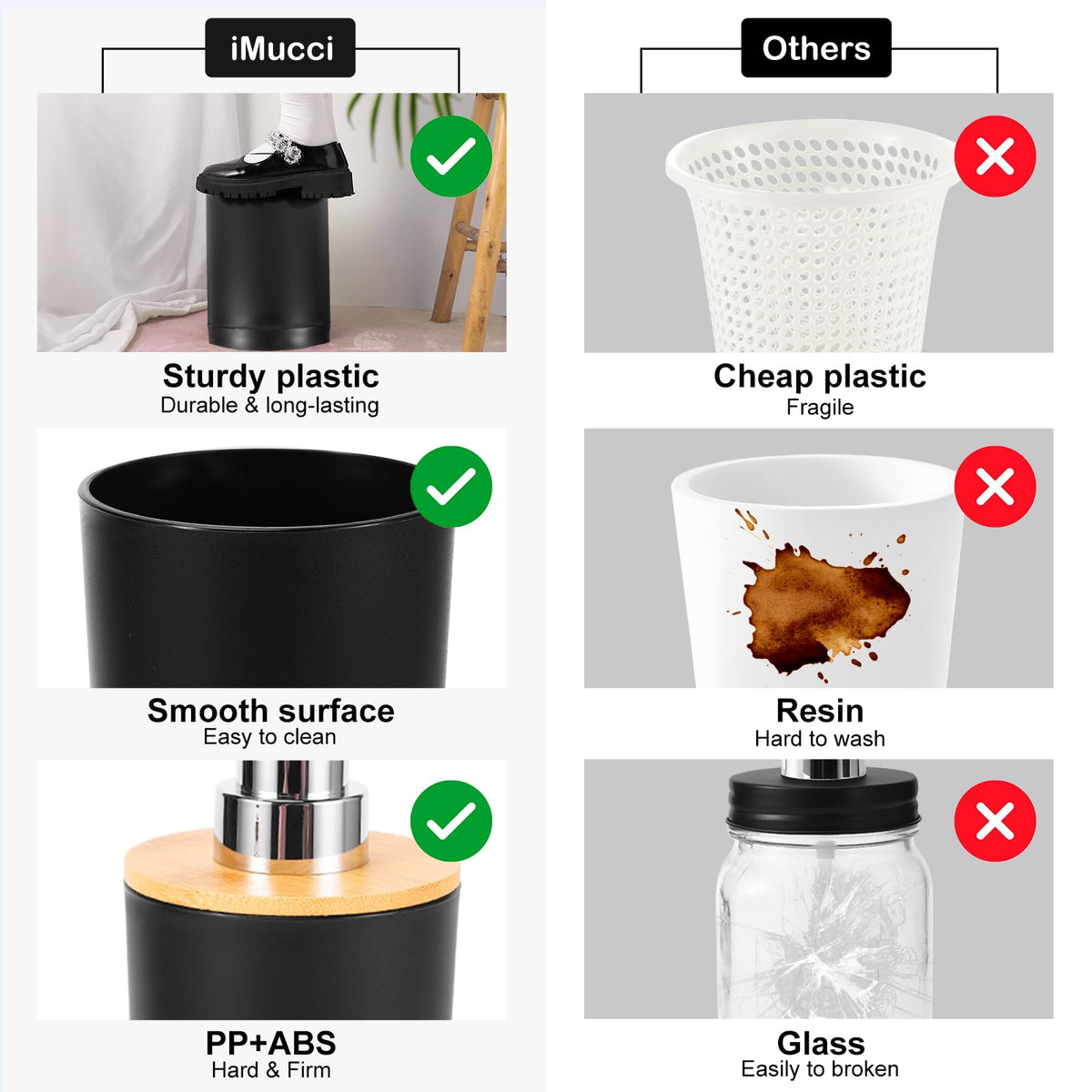 Imucci Bathroom Accessories Set With Trash Can,Toothbrush Holder, Lotion Soap Dispenser, Soap Dish,Tumbler Cup(9Pcs Black Bamboo