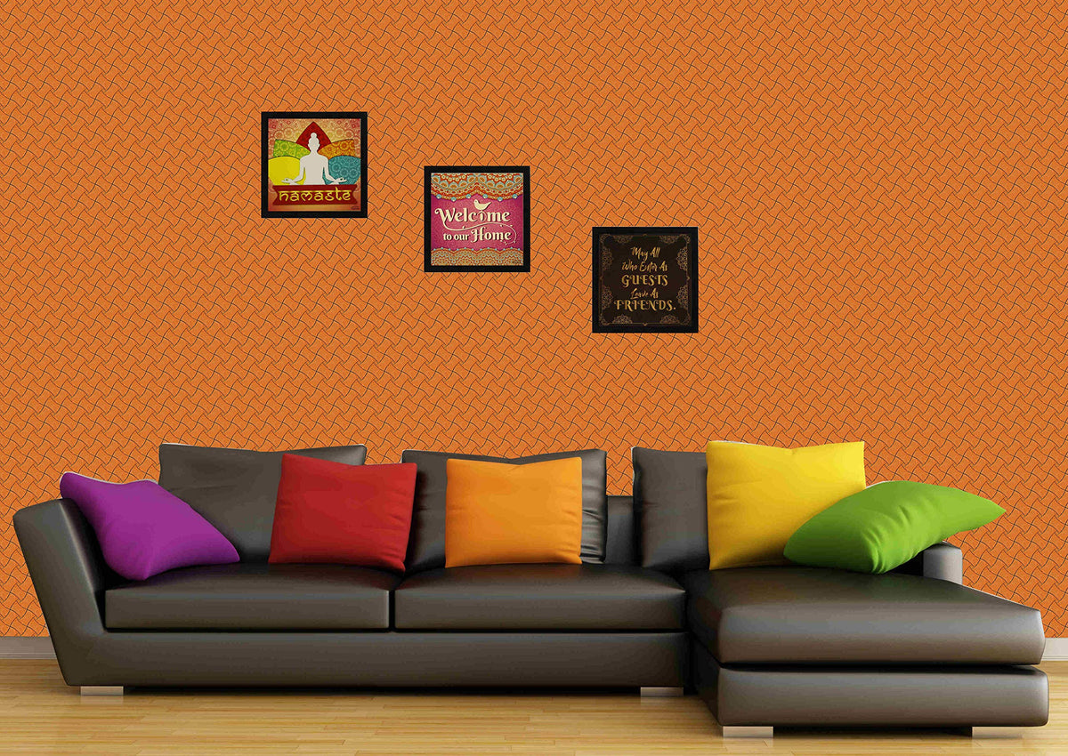 Indianara 3 Piece Set of Framed Wall Hanging Welcome Home Decor Art (1519) Prints 8.7 inch X 8.7 inch Without Glass (9.5 inch x