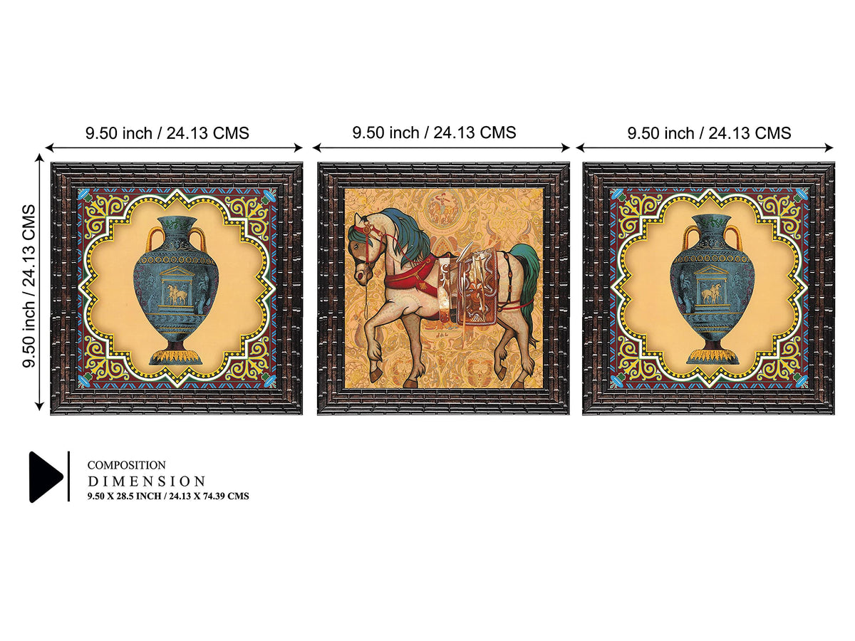 Indianara Set Of 3 Modern Art Framed Wall Hanging Laminated Paintings Matt Art Prints 9.5 X 9.5 Inch Each Without Glass (4010Gb) Multicolor