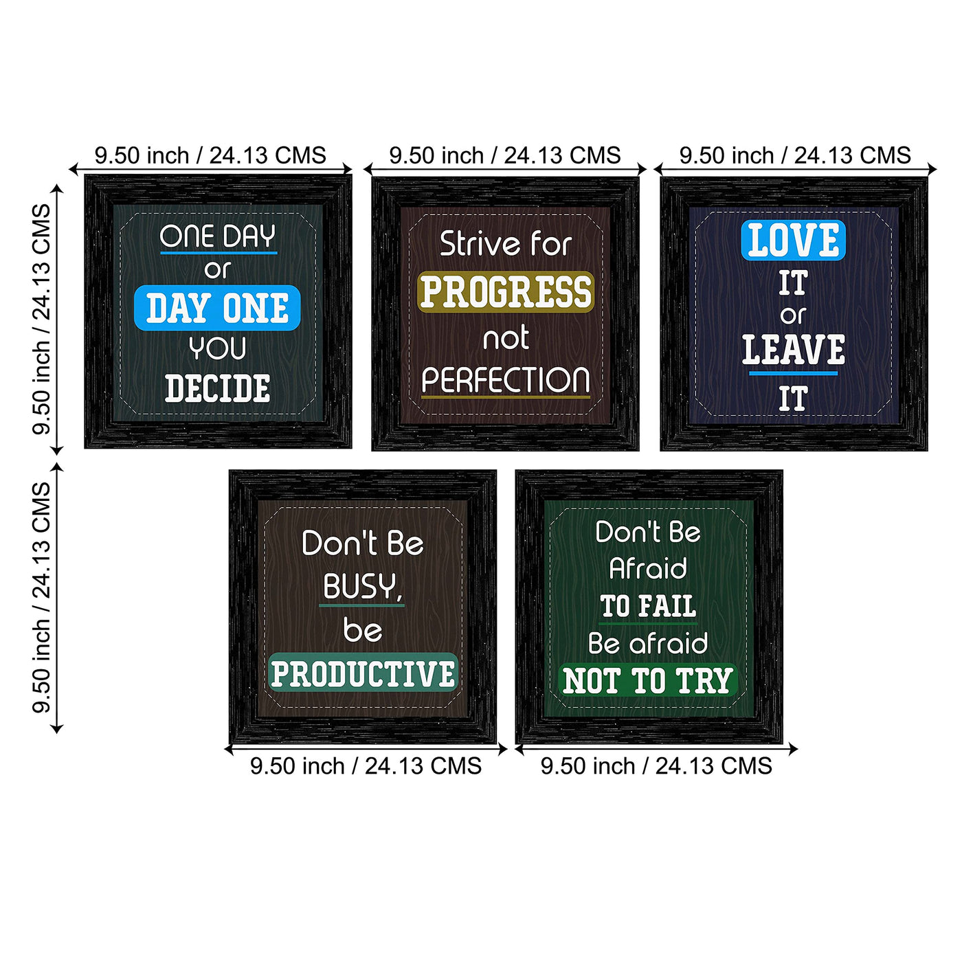 Indianara Set of 5 Motivational Quotes Framed Wall Hanging Laminated Paintings Matt Art Prints 9.5 inch x 9.5 inch each without