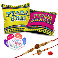 Indigifts Rakhi for Bhaiya Bhabhi | Pyara Bhai & Bhabhi Printed Cushion Cover 12x12 with Filler, Lumba Rakhi for Bhaiya Bhabhi f