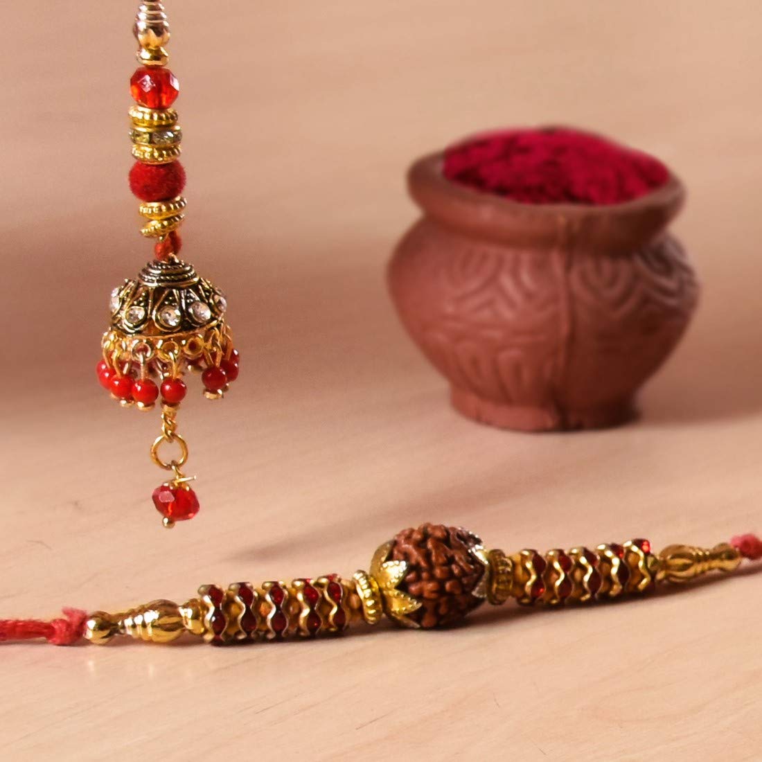 Indigifts Satin Favourite Brother and Sister in Law Printed Cushion Cover with Filler, Rudraksha and Lumba Rakhi Set for Bhaiya