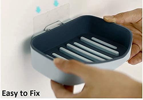 Inditradition Self Adhesive Wall Mounted Soap Holder For Bathroom | With Water Draining Tray, Plastic, (Pack Of 4)