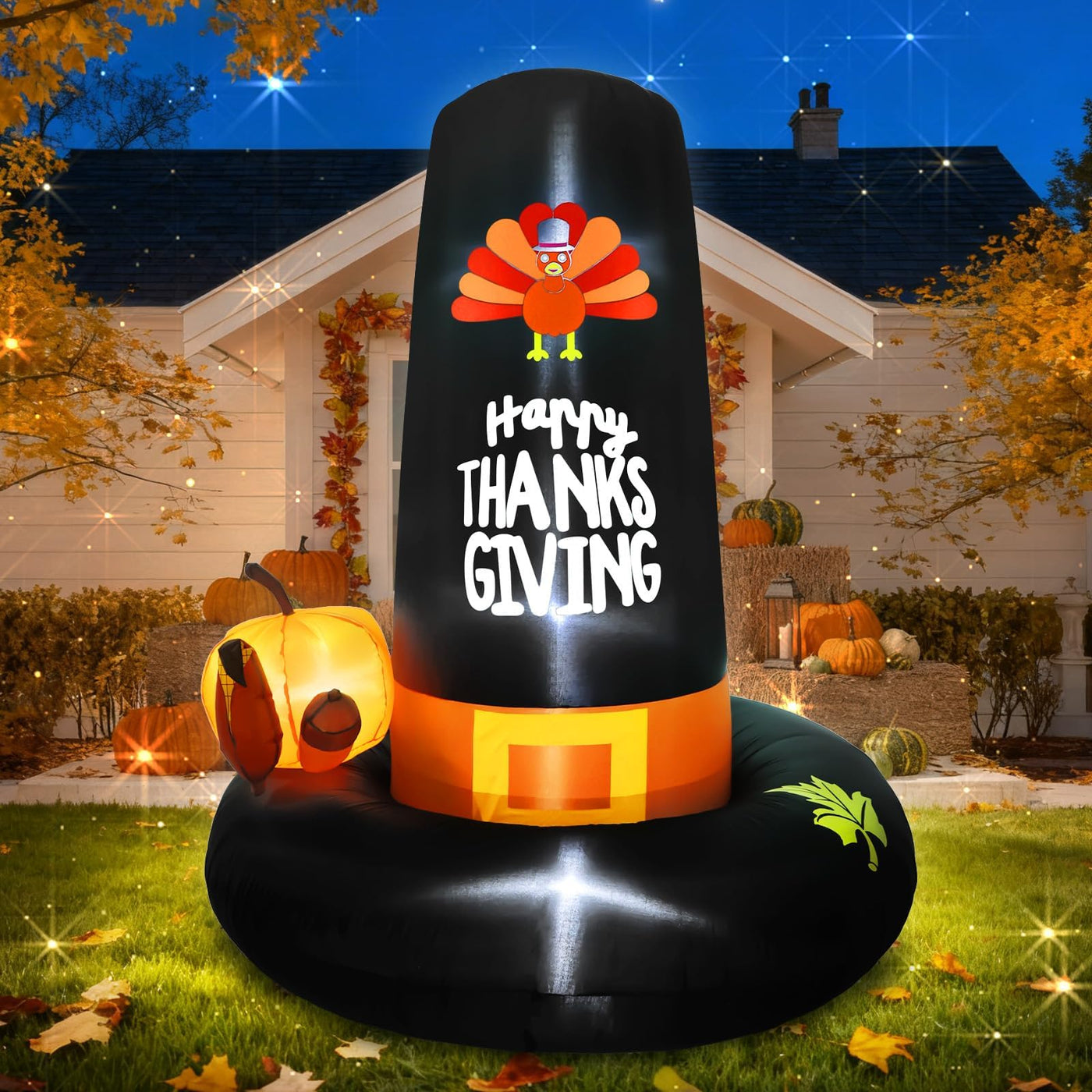 Inflatable Turkey Pilgrim Hat Lawn Decorations Thanksgiving Inflatable Outdoor Yard Decoration 6FT Giant Blow Up with LED Lights