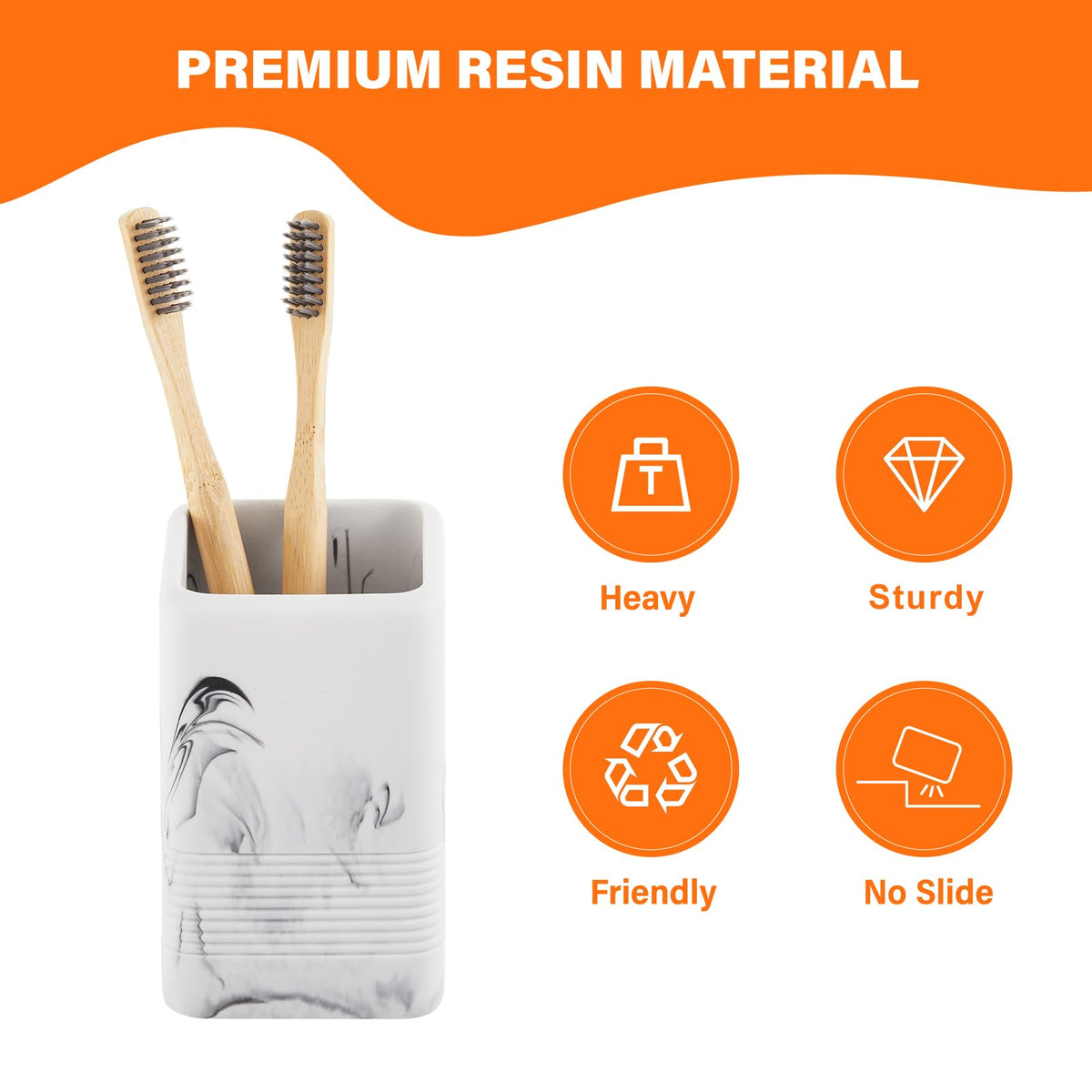 - Q: How do I clean the resin toothbrush holder? A: To clean the resin holder, simply wipe it down with a damp cloth and mild soap, avoiding abrasive cleaners to maintain its finish.