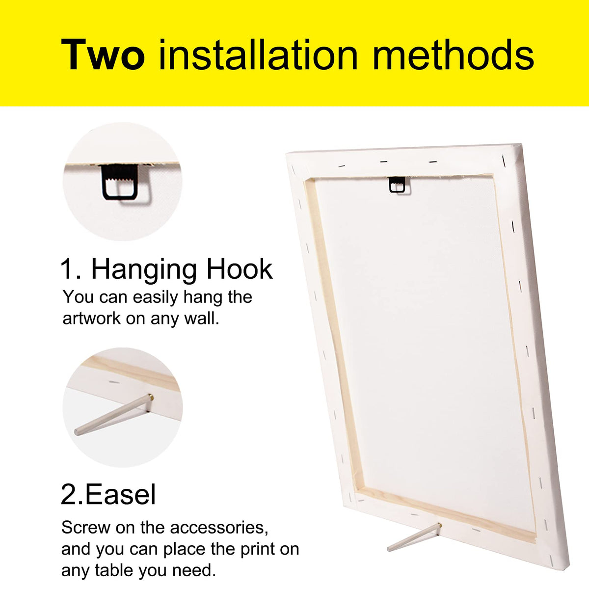 - Q: How can I install this canvas art? A: The canvas art can be easily installed on the wall using the included metal hook or placed on an easel for quick setup.