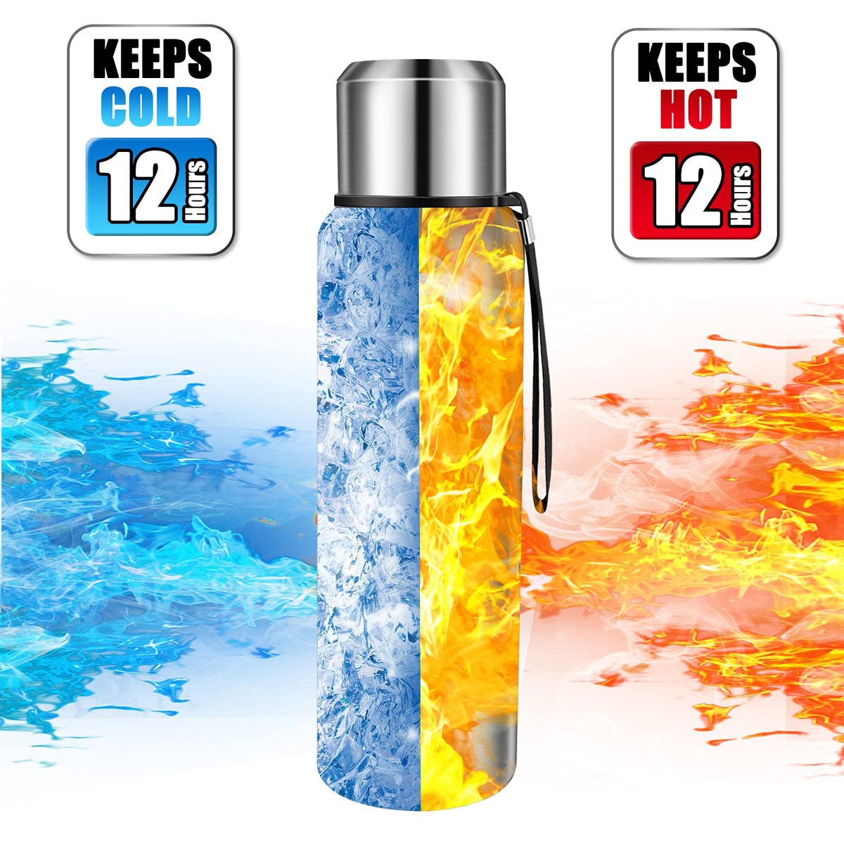 Insulated Vacuum Thermo Bottle 25Oz With Cup Lid Leakproof Stainless Water Flask For Coffee Hot And Cold Drink.(Silver,750Ml)