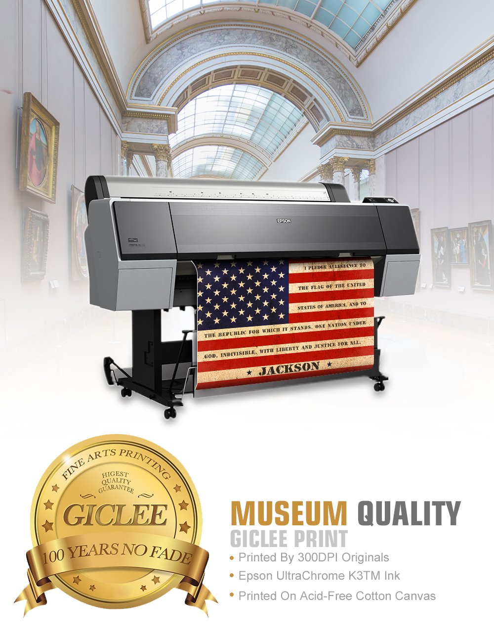 - Q: What type of coating is applied to the print? A: A semi-gloss acrylic coating is applied to enhance the appearance and protect the print from dirt and dust.